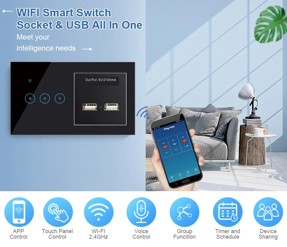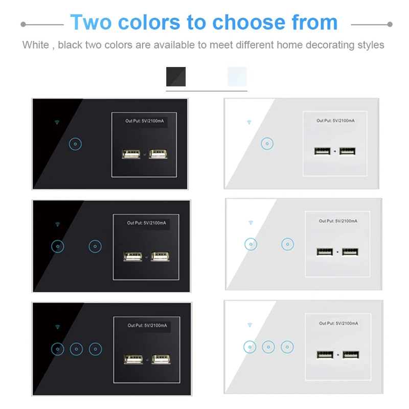 Tuya Smart Life APP Control светодиодный настенный светильник 2200 Вт 90-240 в сенсорный Умный домашний выключатель 2 USB порта Alexa Google Assistant