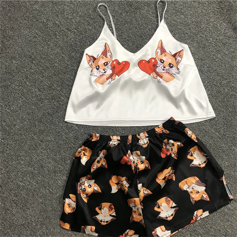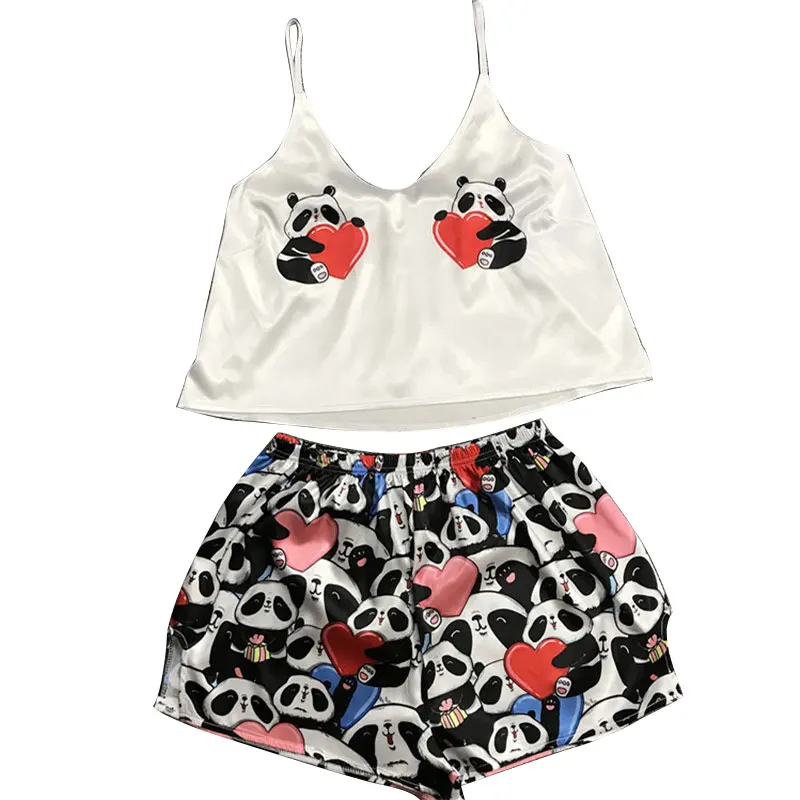 Женская милая Пижама, комплект из 2 предметов, пижама, летняя Пижама с v-образным вырезом, Женская свободная Пижама на бретельках, топы с мультяшным принтом, жилет, шорты