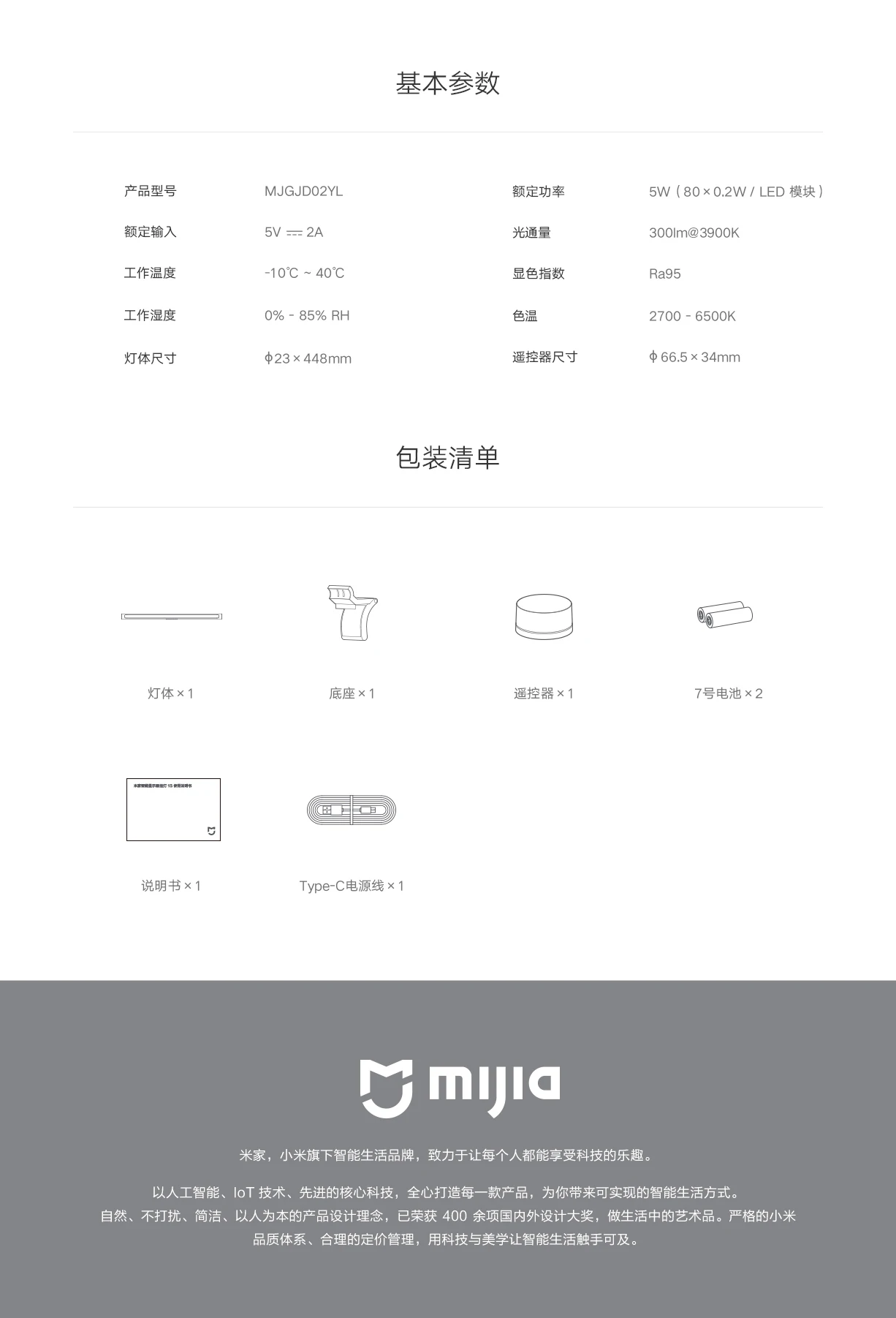 Настольная лампа Xiaomi Mijia Lite, складная, с разъемом USB Type-C