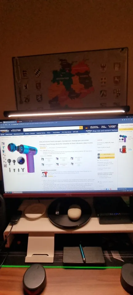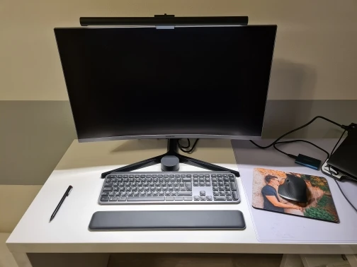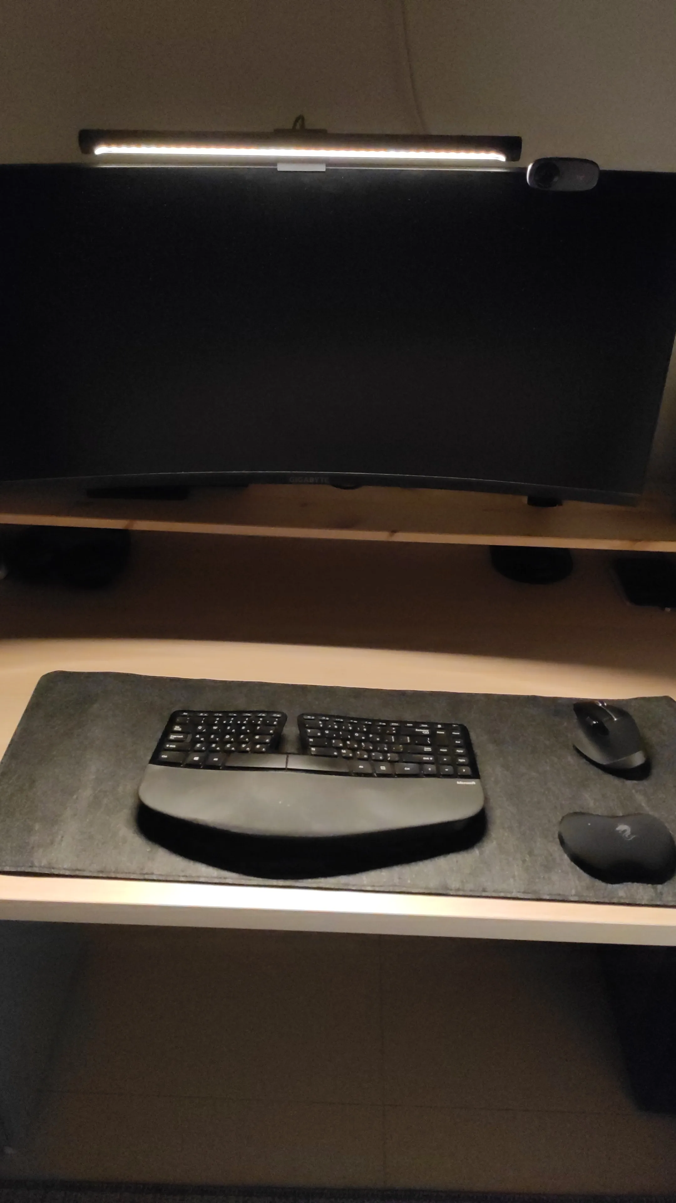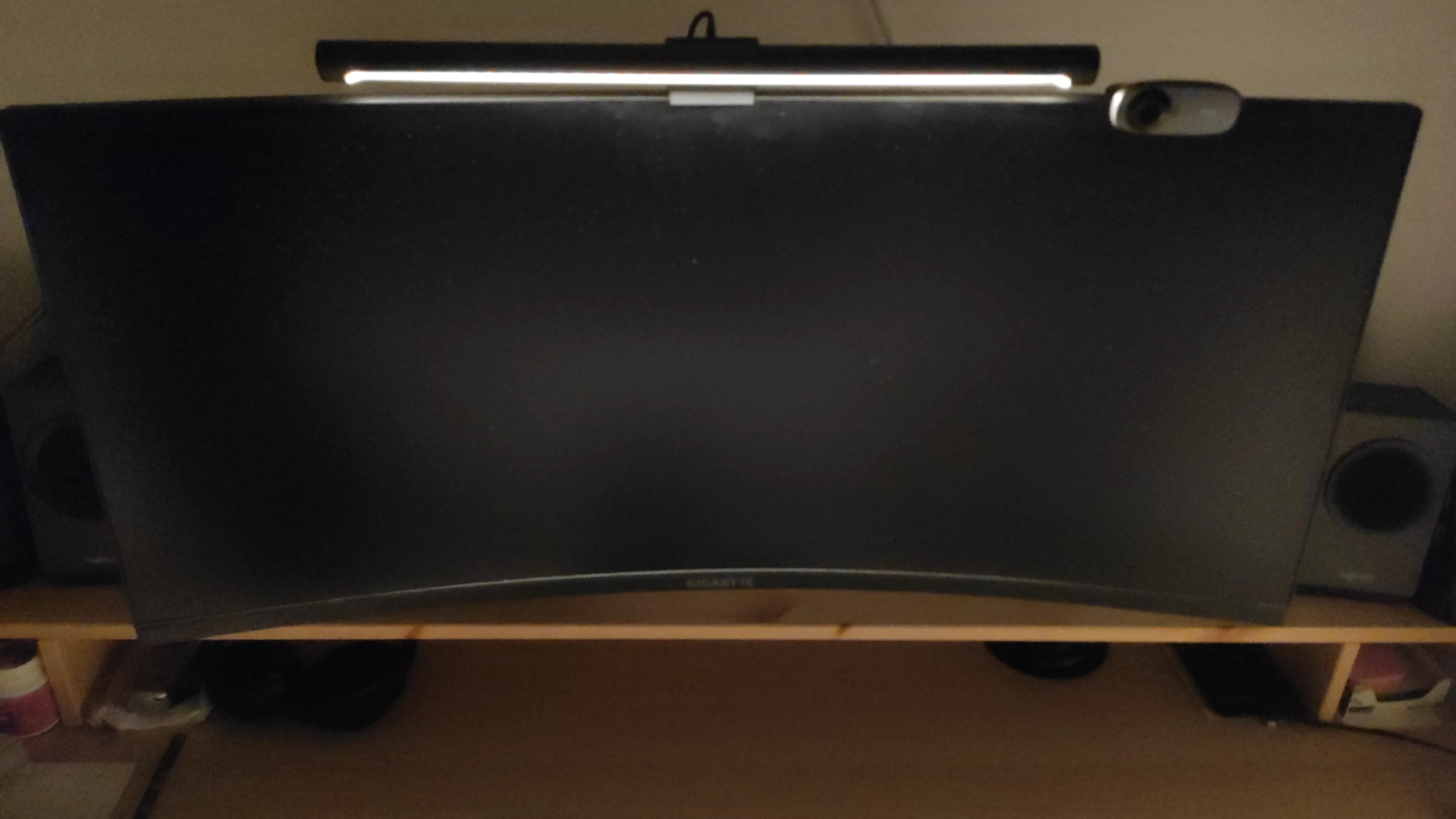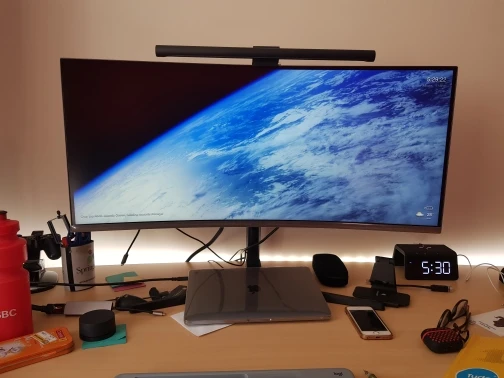 Доставка месяц, но зато курьерской службой до квартиры. Светильник огонь, к дисплею ми 34" подошел отлично, крепление универсальное, подойдет к любому современному монитору. Можно немного менять угол световой полосы, делая направление луча света ближе к дисплею или к себе. Уровней яркости около 8, но этого более чем достаточно, максимальный не лупит прожектором, минимальный дает меньше света чем сам монитор. Шайба управления очень приятная, не хочется отпускать. Кабель питания коротковат, до розетки на полу не дотянет, в идеале чтоб в мониторе был usb-a.