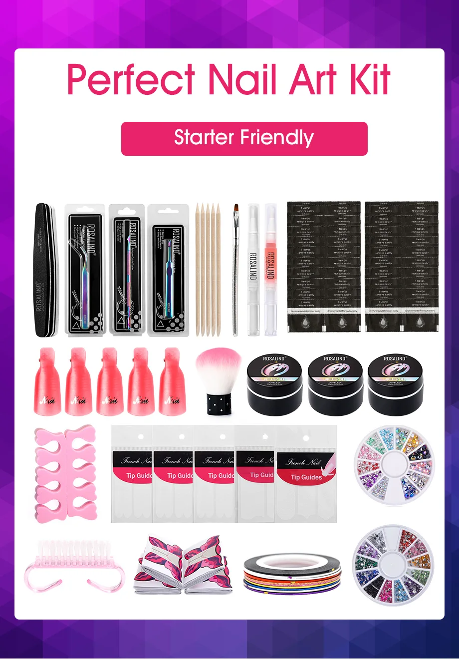 Лампа для наращивания набор гелей для ногтей ROSALIND, набор инструментов для маникюра и геля, профессиональный набор для дизайна ногтей