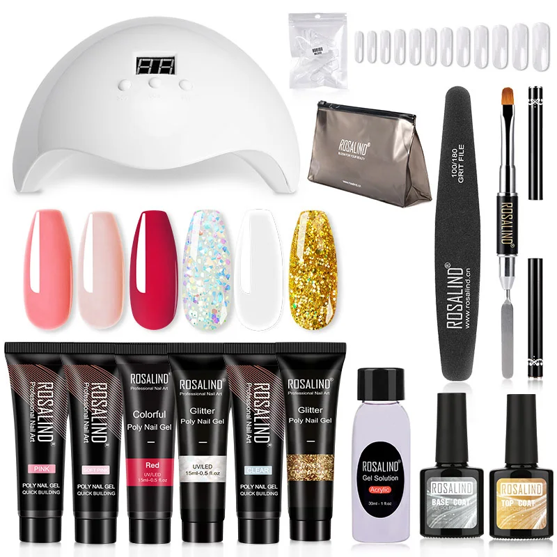 Лампа для наращивания ROSALIND Poly набор гелей для ногтей, набор инструментов для гель-лака, все для маникюра, набор профессиональных инструментов для наращивания геля
