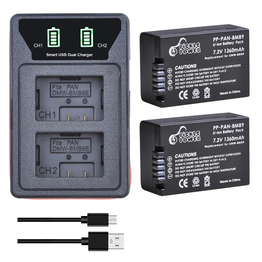 Аккумулятор 1360 мАч DMW-BMB9 DMW-BMB9E + двойное USB-зарядное устройство со светодиодной подсветкой для Panasonic Lumix DMC FZ40K FZ45K FZ47K FZ48K FZ60 FZ70 FZ100