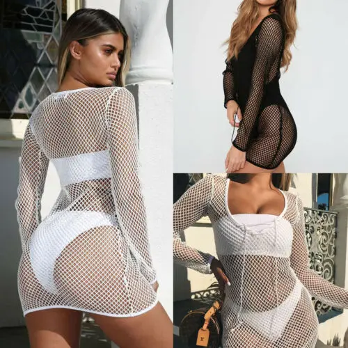Женская накидка на бикини, летняя Новинка, модные сексуальные прозрачные ажурные мини-платья с низким вырезом, накидка для женщин, купальники (черныйбелый)
