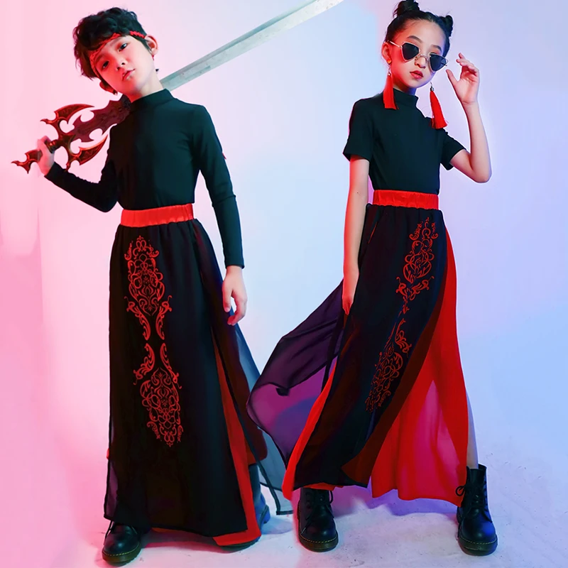 Новые детские костюмы в китайском стиле в стиле хип-хоп для мальчиков и девочек, джазовая одежда для выступлений одежда для подиума, Современная сценическая одежда DNV13406