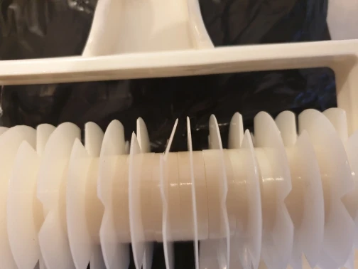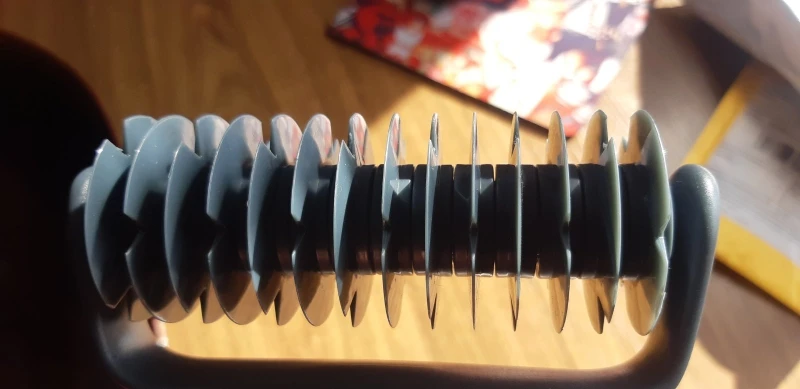 Заказали 25 января получили 13 февраля. Упаковано все хорошо. Пришло все целое. Без каких либо запахов. Пластик плотный. Ролик от 1го до последнего ножа 10 см.