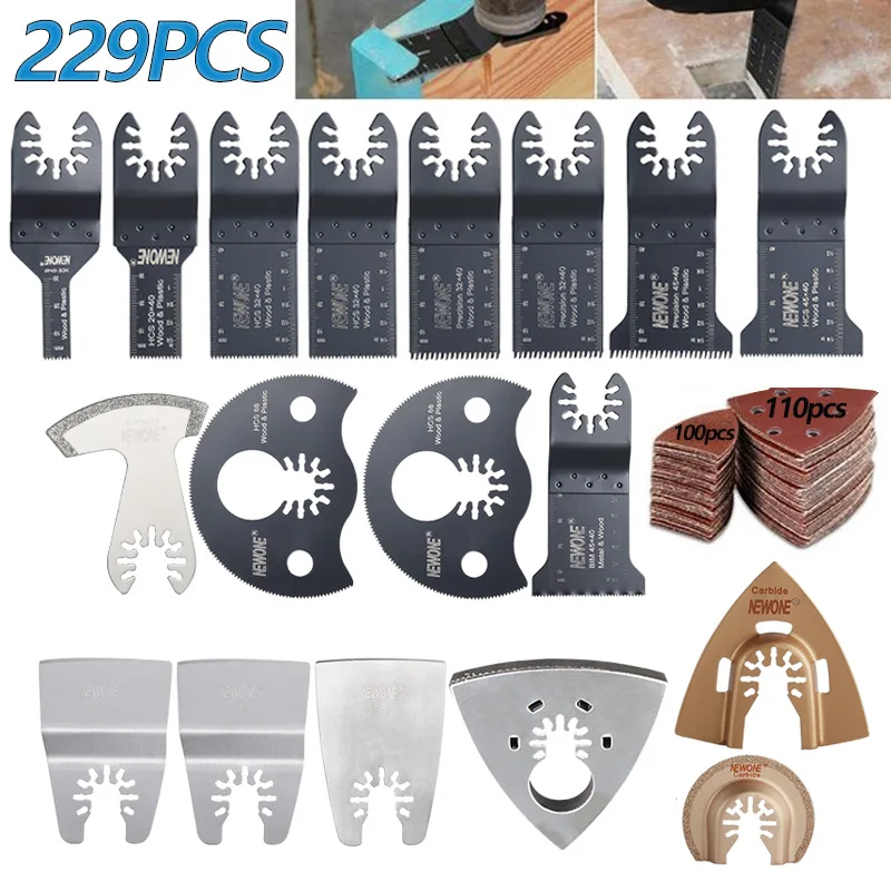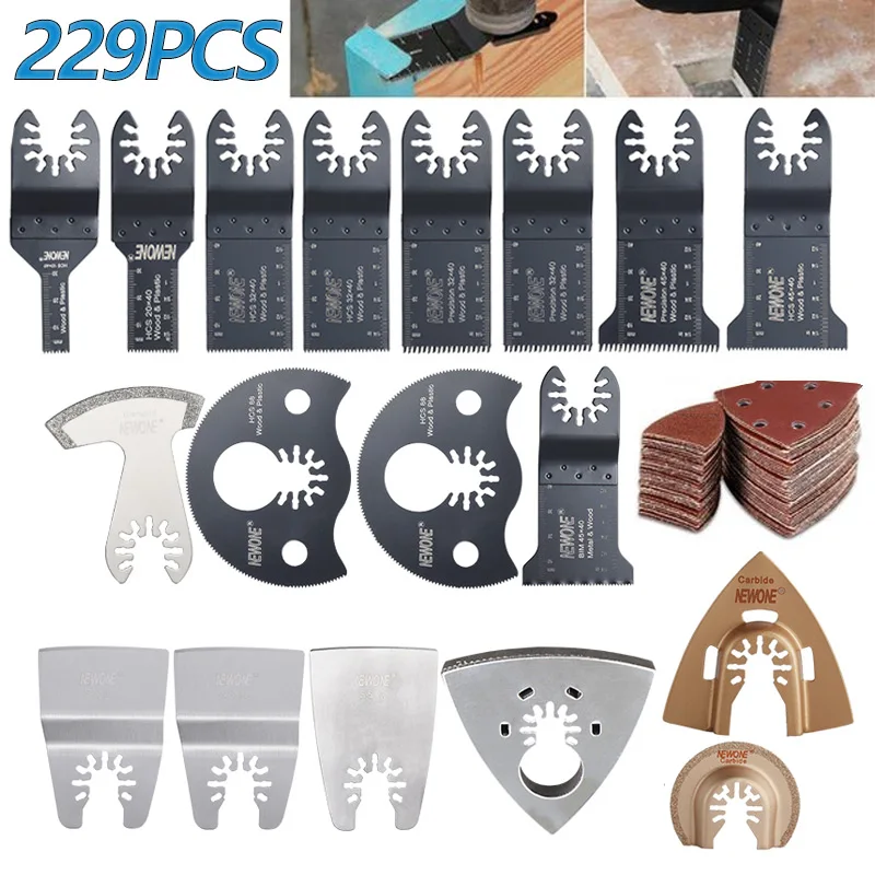 229 шт. Быстросменные Сменные многофункциональные инструменты, комплекты колеблющихся полотен пилы, резка металла, полировка, удаление лезвия пилы, аксессуары NEWONE