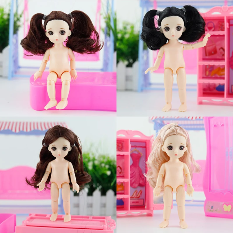 16 см подвижные шарнирной Куклы Игрушки для девочек 3D с принтом большие глаза с изящным кукольным тела общая мускул длинные волосы мода женский с одеждой TSLM1