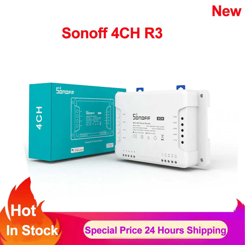 Умный выключатель Sonoff, 4 канала, R3, 4 клавиши, Wi-Fi, 3 режима работы, межблочный замок, самоблокирующийся дом, переключатель сделай сам через приложение Ewelink