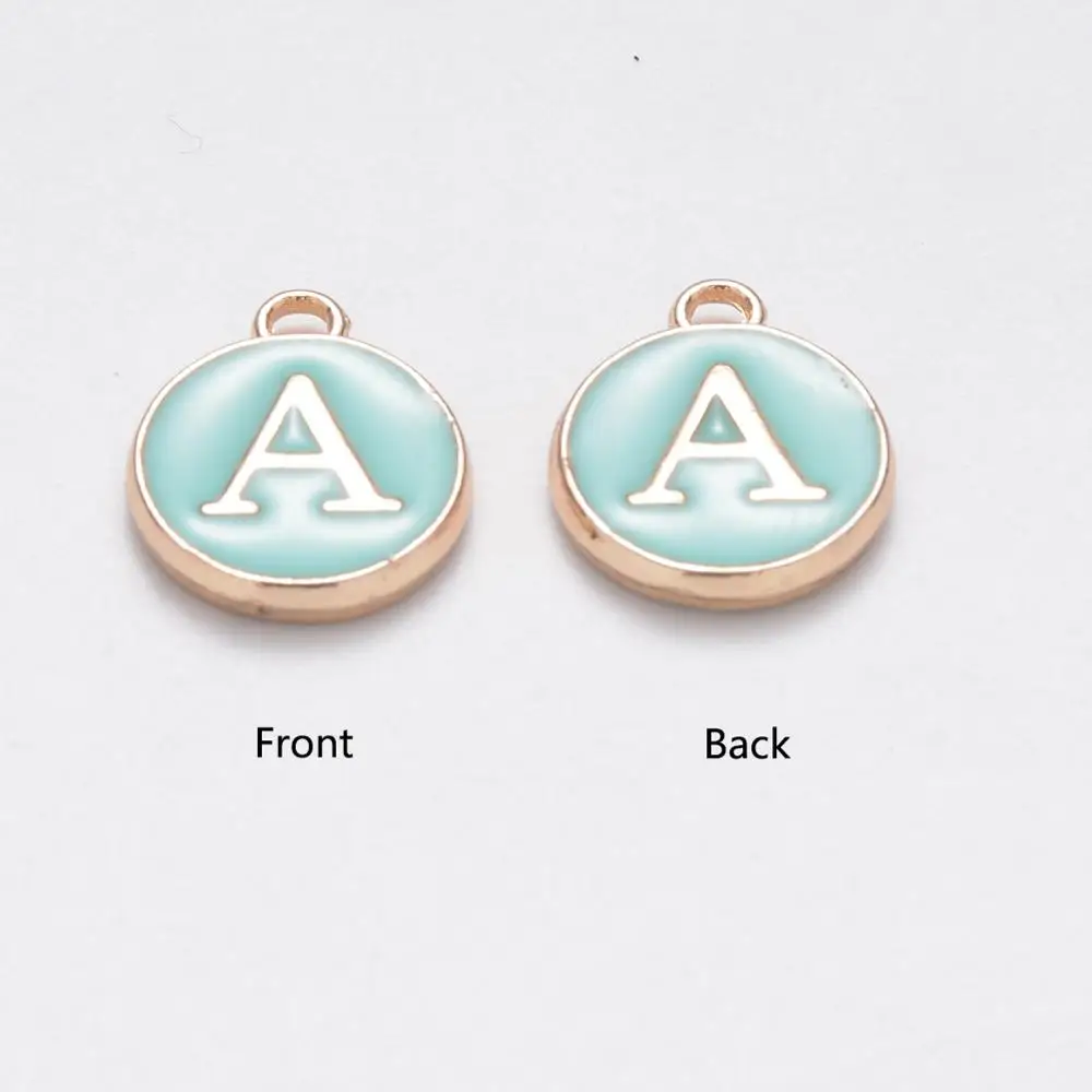 Позолоченные эмалированные подвески из сплава, эмалированные блестки, плоские круглые с алфавитом, Буквы A ~ Z, бирюза