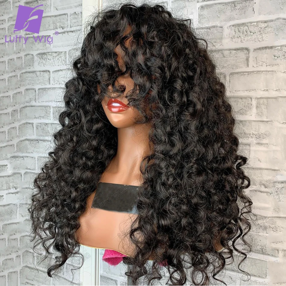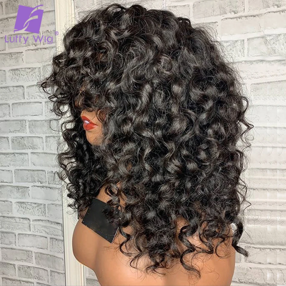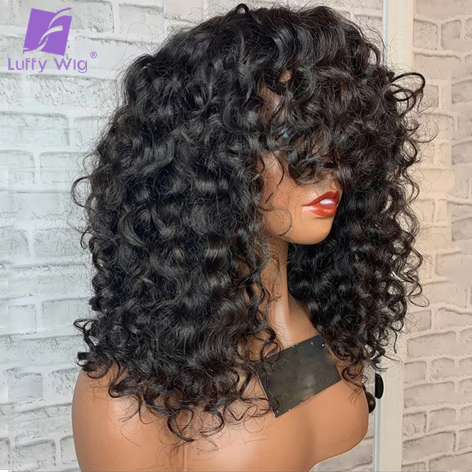 Luffywig Надувные вьющиеся волосы для головы, основная часть, полностью машинный парик с челкой, 180 плотность, бразильские вьющиеся человеческие волосы Remy, парик на челке