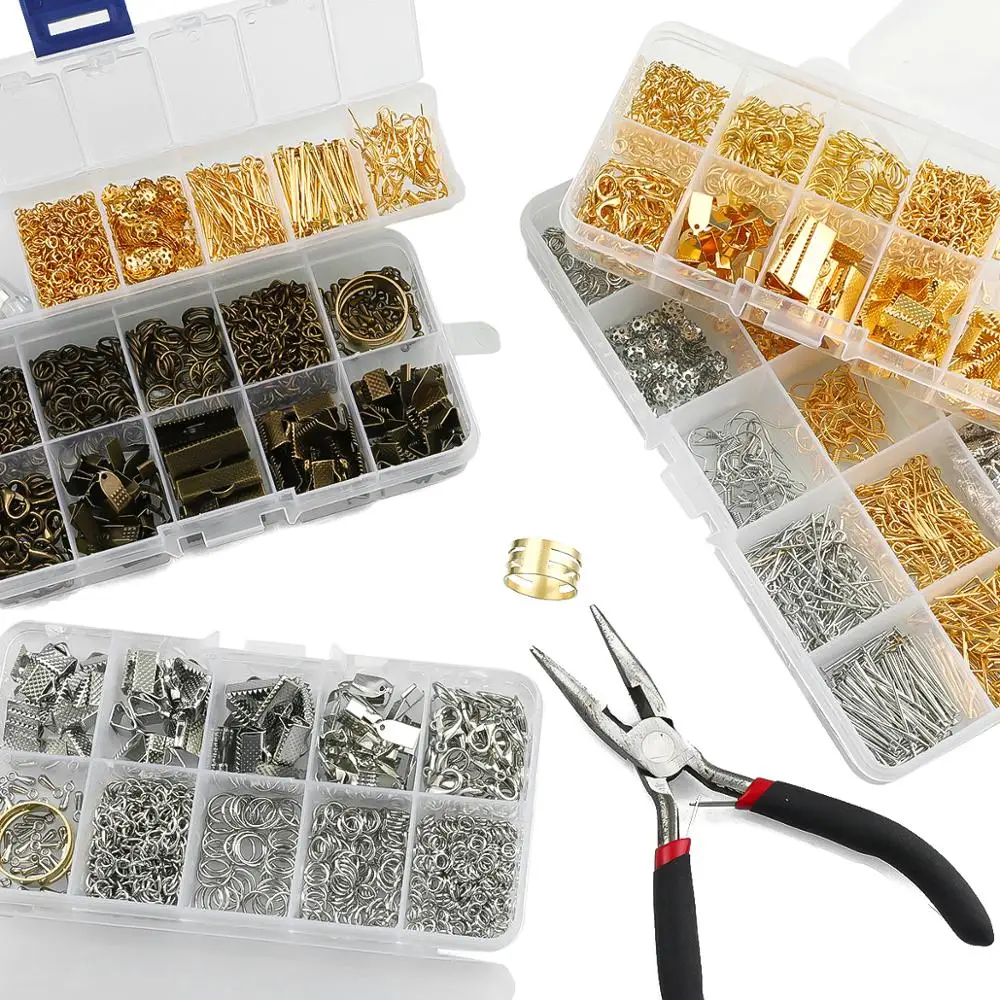 DIY ювелирных изделий делая коробку прыгать одно кольцоОмаров застежка пряжкаобжимной Конецудлинитель цепиСерьги Крючки для DIY бусины комплект