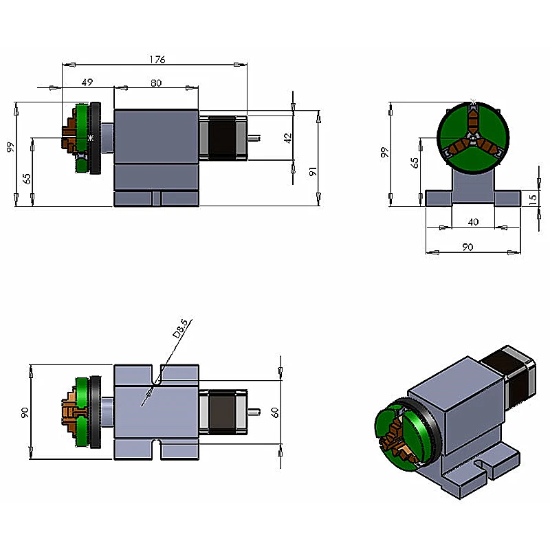 Коэффициент снижения скорости: 50:1 Шаговый двигатель: двухфазный шаговый двигатель 42 мм 1.6A Размер: 176 мм * 90 мм * 95 мм