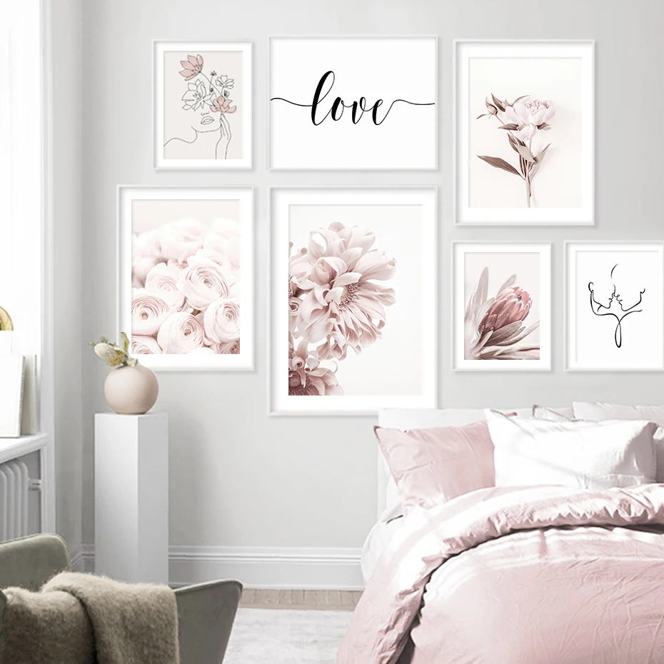 Картина на холсте с розовыми цветами, настенный постер, картина для...