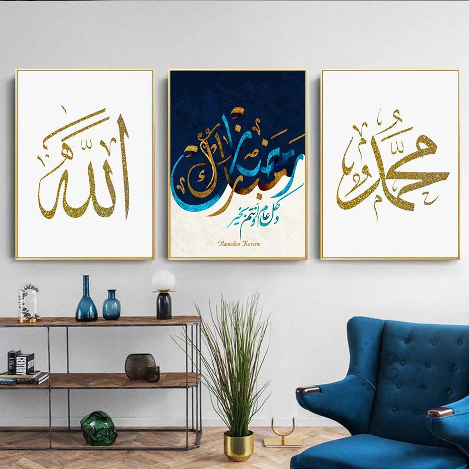 Золотая мусульманская каллиграфия инша Аллах, мусульманские постеры...