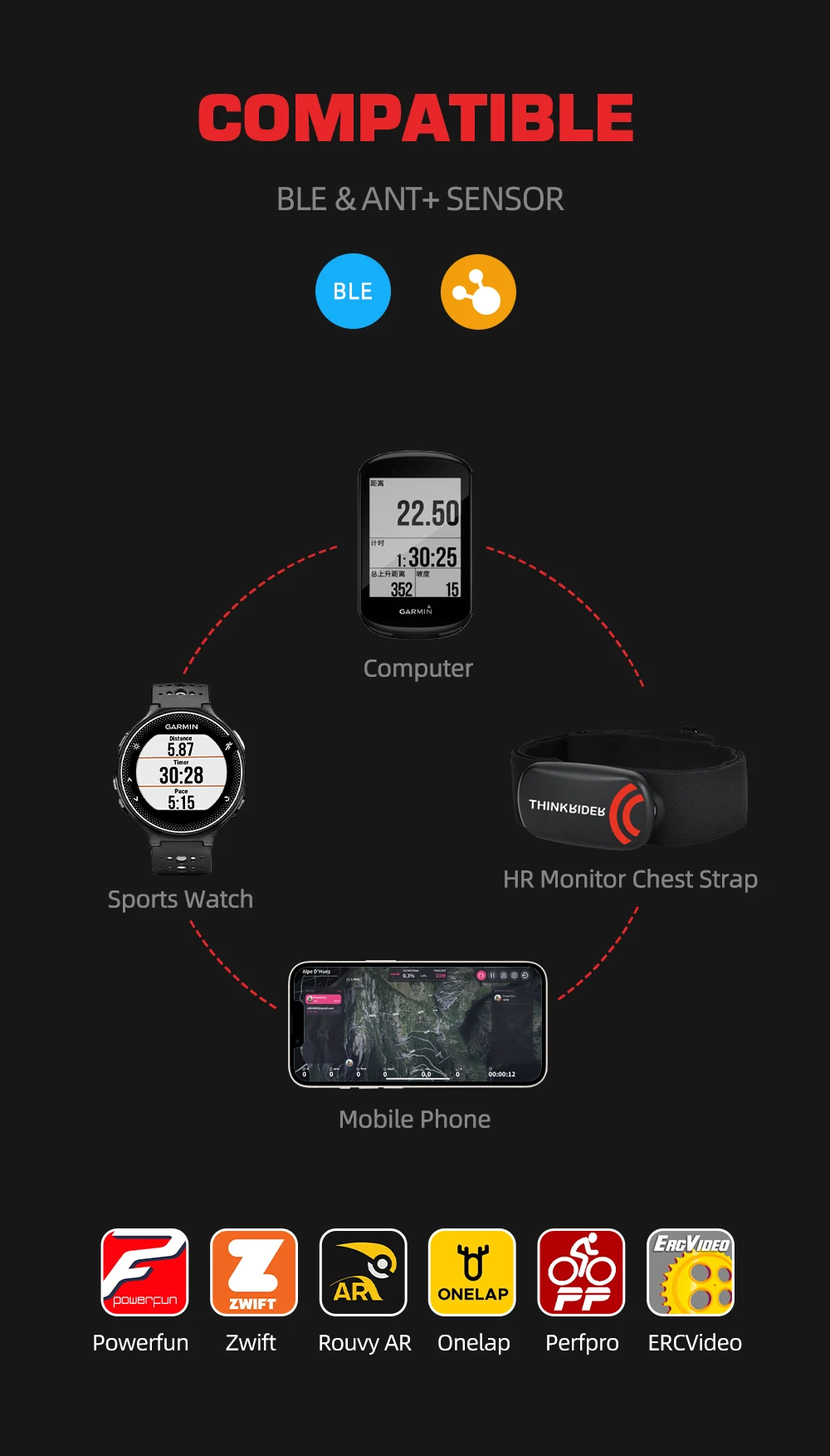 Монитор сердечного ритма ThinkRider C5 ANT +, велосипедный компьютер с двумя датчиками скорости и частоты вращения педалей, подходит для iGPSPORT bryton Zwift