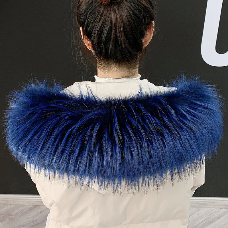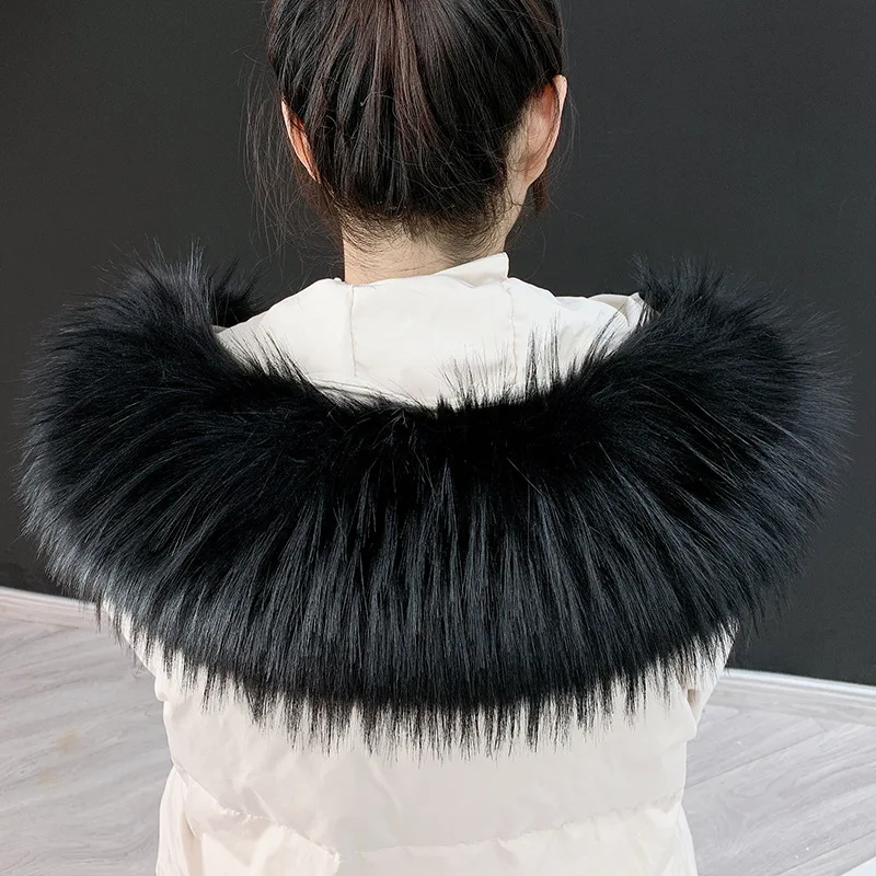 Женский съемный воротник из искусственного меха енота для зимнего пальто и капюшона декоративный искусственный воротник под мех под заказ