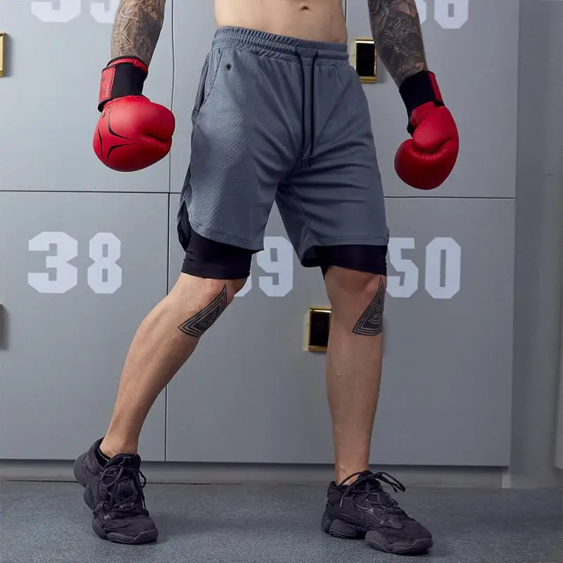 Шорты для бега, мужские спортивные шорты для фитнеса, тренажерного зала, быстросохнущие спортивные шорты для тренировок, спортзала, бега, двухслойные Летние удобные мужские шорты