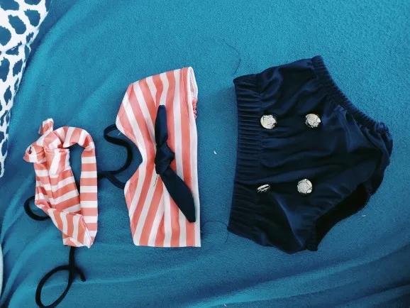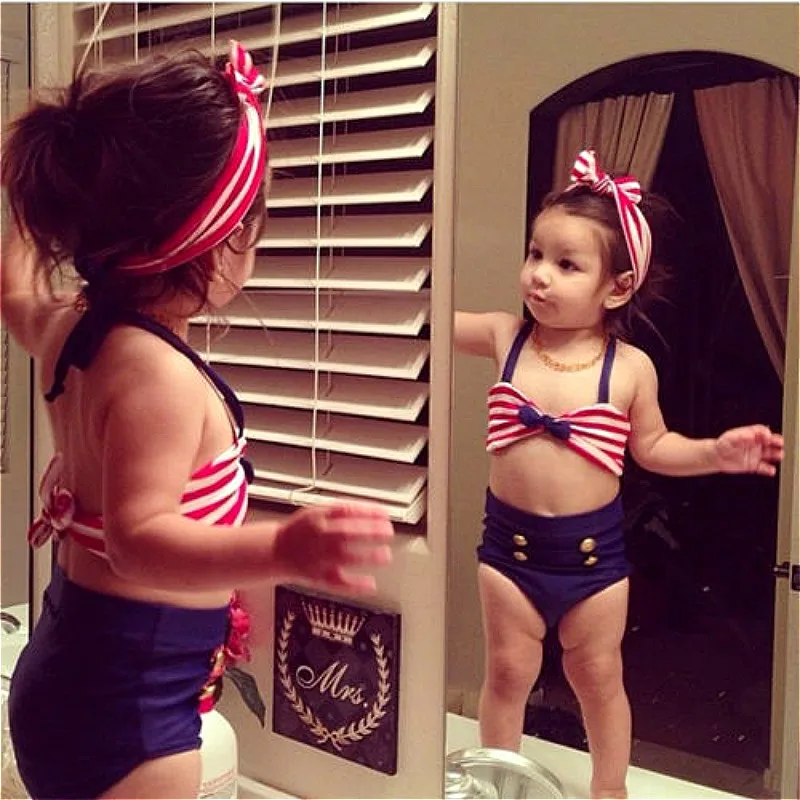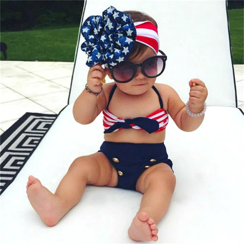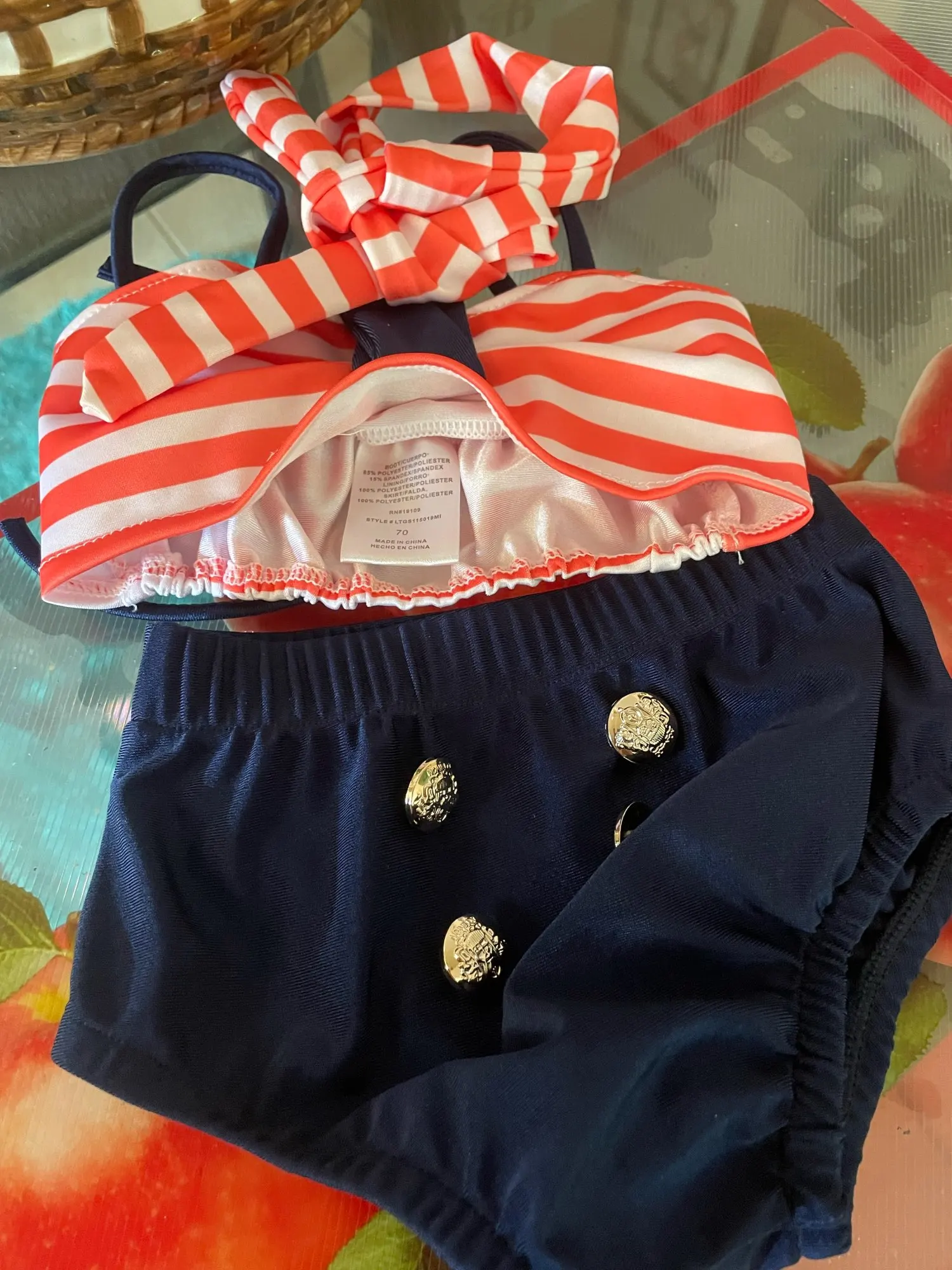 Купальник для новорожденных девочек 0-24 мес. купальный костюм из 3 предметов полосатый комплект бикини Детский купальник детская пляжная одежда