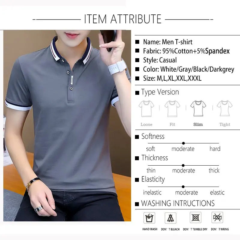 Мужская приталенная футболка TFETTERS, летняя футболка в Корейском стиле с короткими рукавами и отложным воротником, 2021