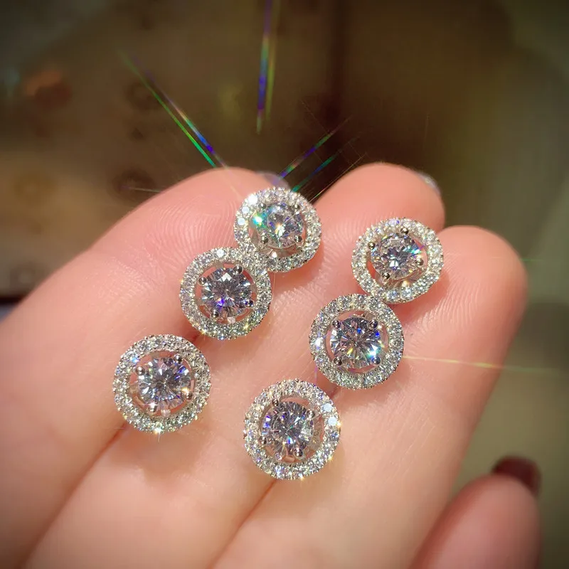 Женские серьги-гвоздики CC, свадебные ювелирные изделия для помолвки с кубическим цирконием и круглым камнем, свадебные модные аксессуары, Прямая поставка E032