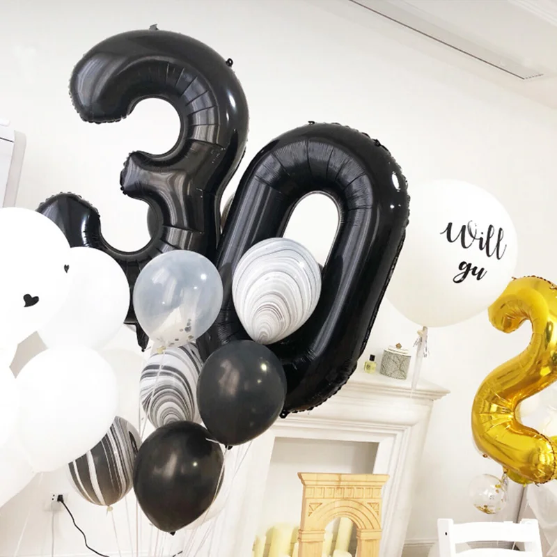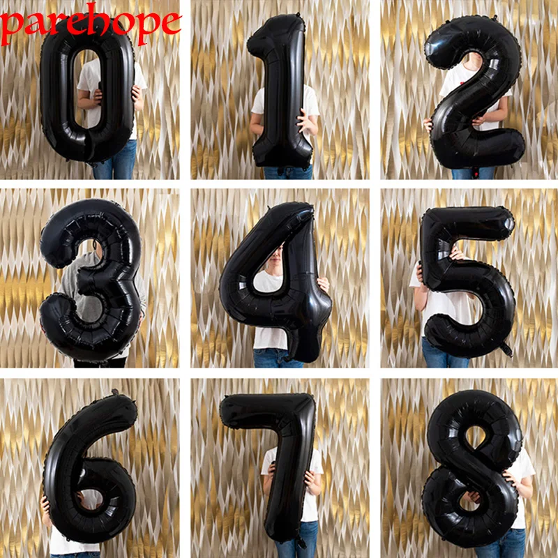 Воздушный шар из фольги, 40 дюймов, с цифрами, черного цвета