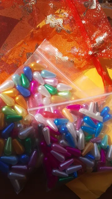Отличные капельки. Все целенькие. Сколько штук-не проверяла.Спасибо продавцу за подарок. Продавца рекомендую. Ещё раз спасибо!