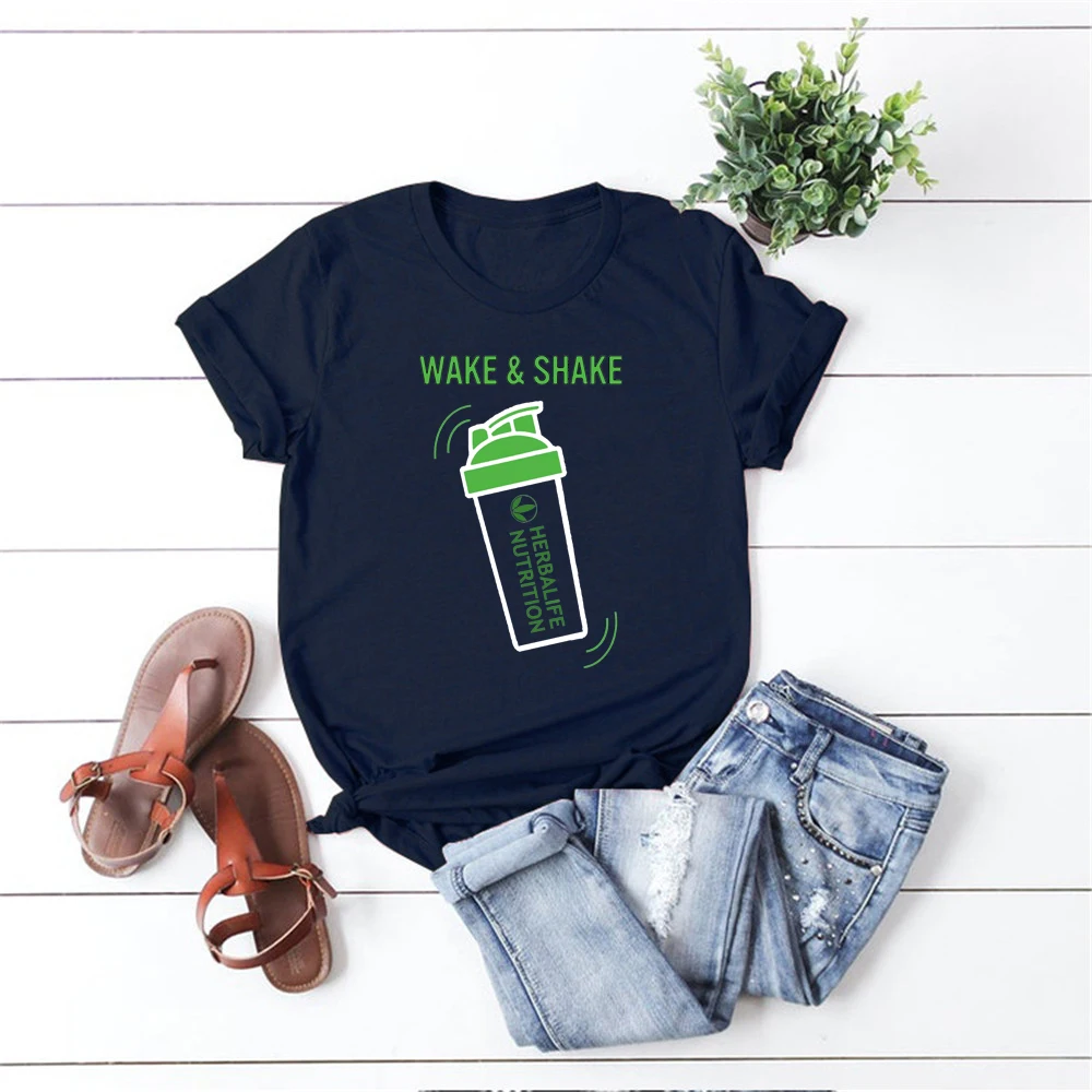 Рубашка с надписью Wake Shake Herbalife Nutrition, забавная футболка Herbalife, женские повседневные топы, тренировочные футболки, женская рубашка в стиле Харадзюку