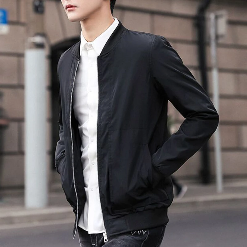 Куртка-бомбер мужская осенняя, на молнии, с длинным рукавом