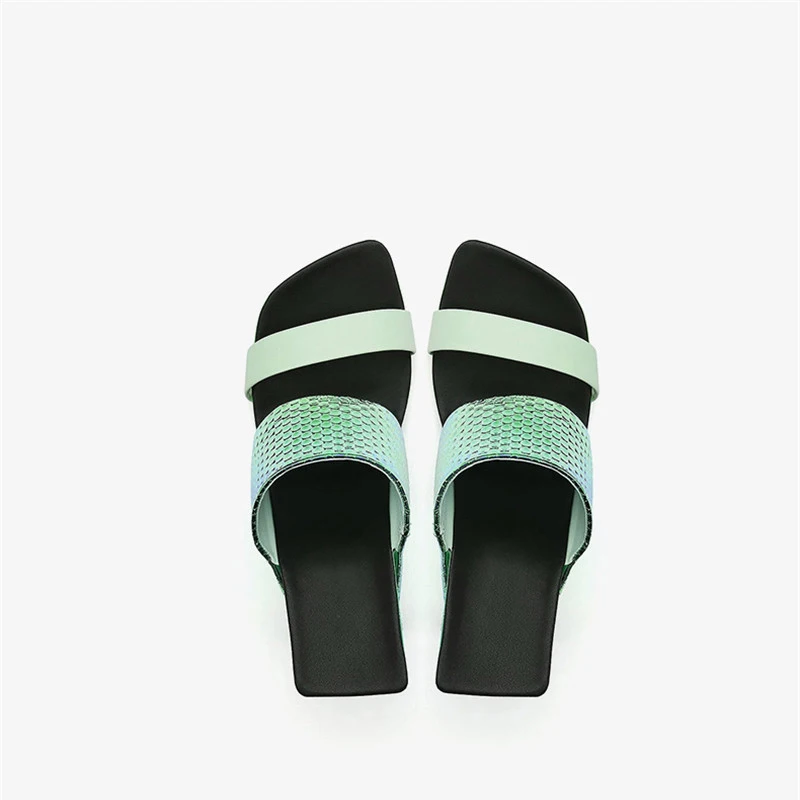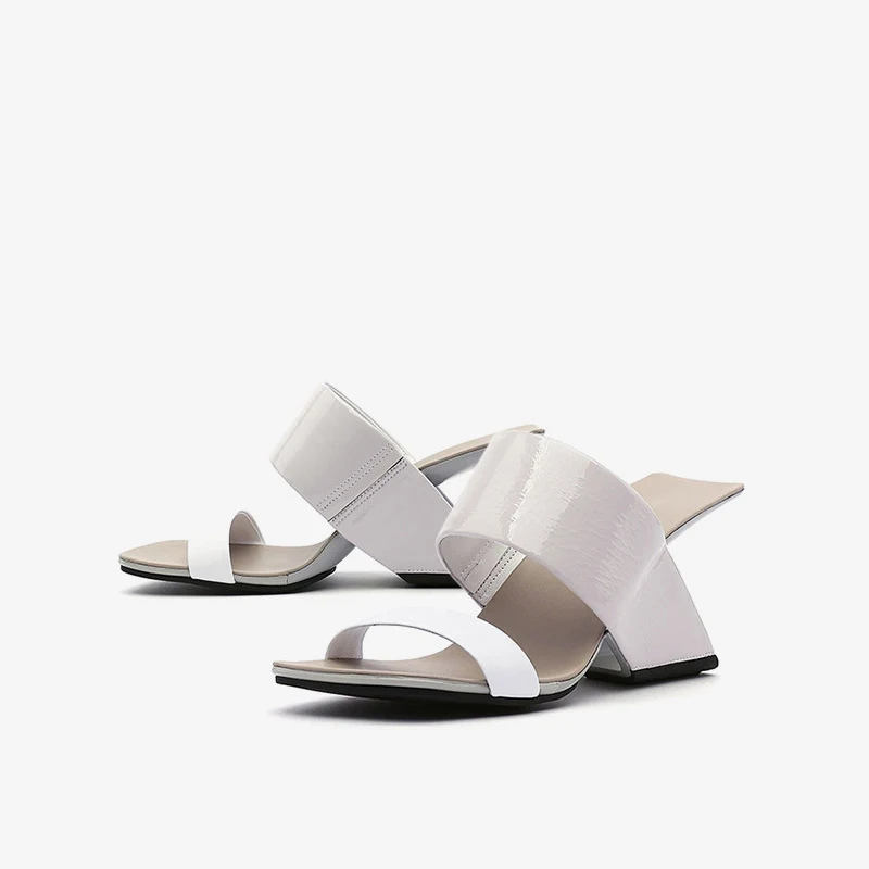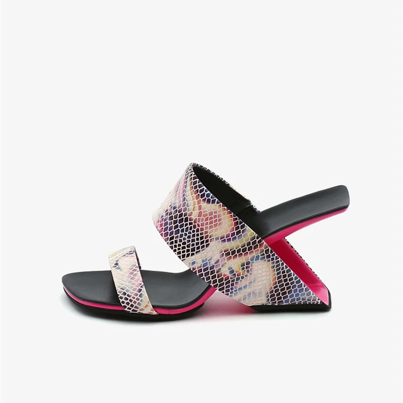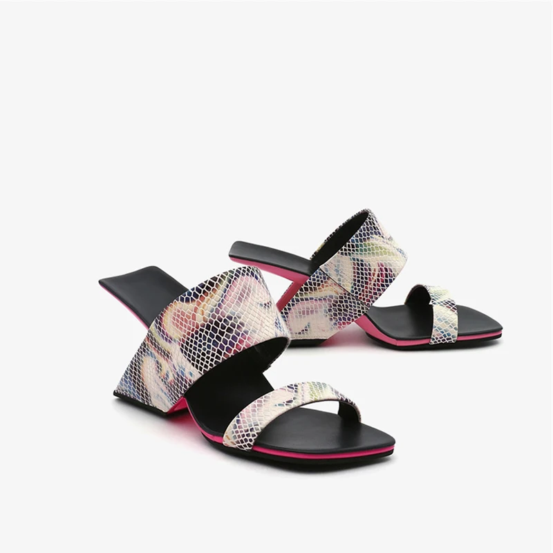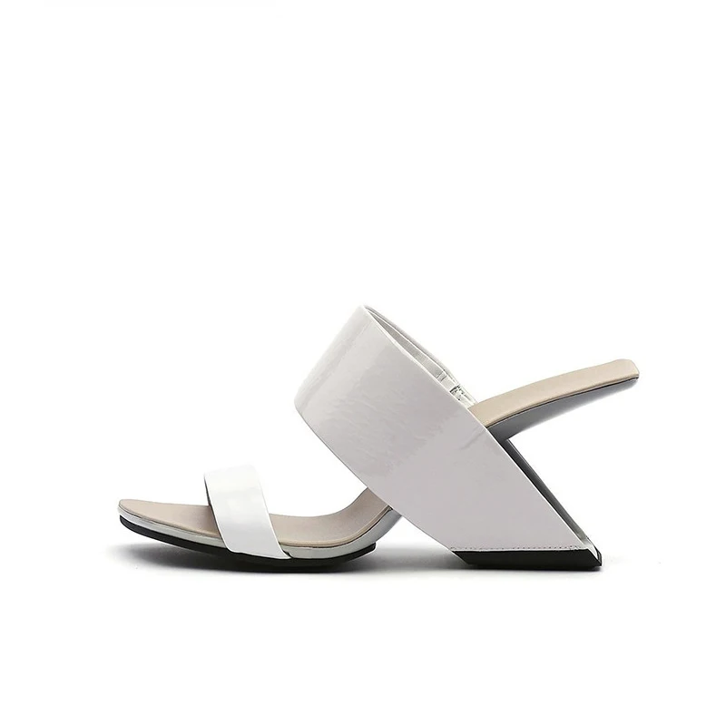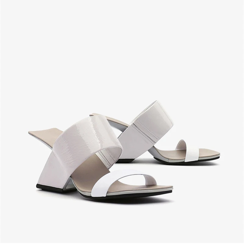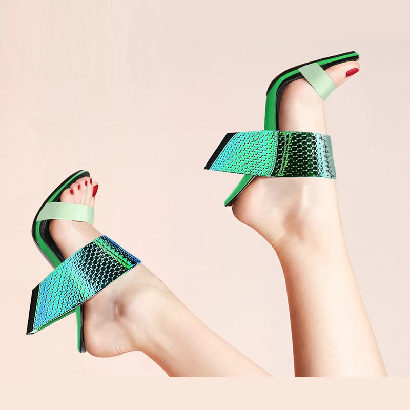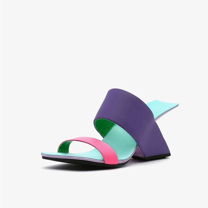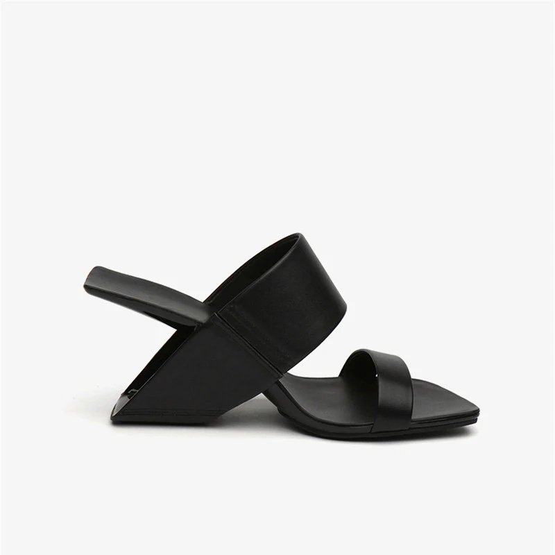 Шлепанцы из натуральной кожи, с открытым носком, на высоком каблуке 8 см