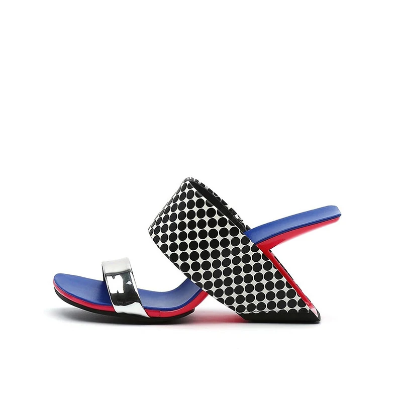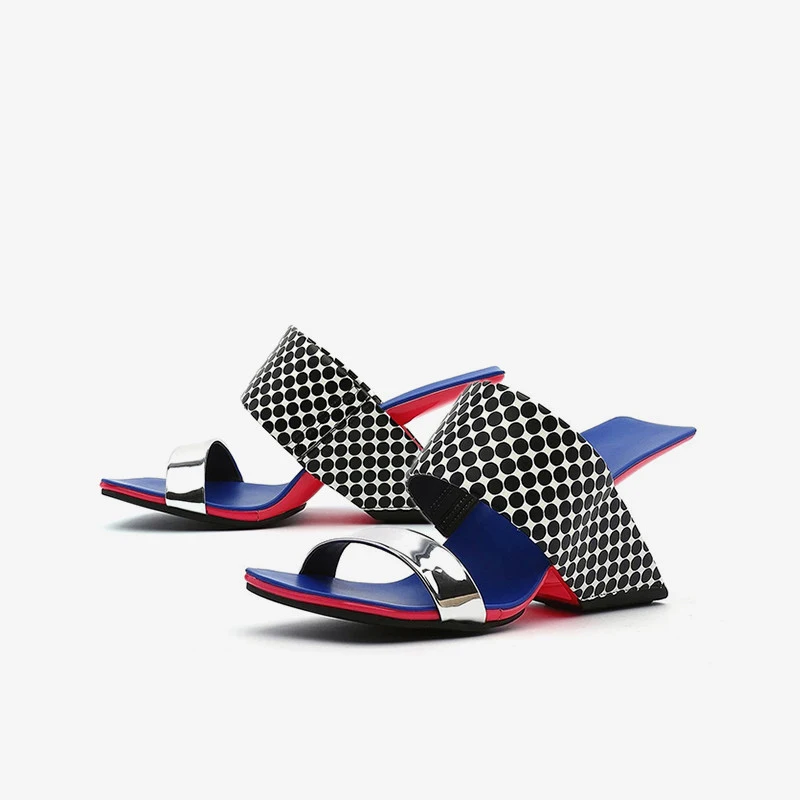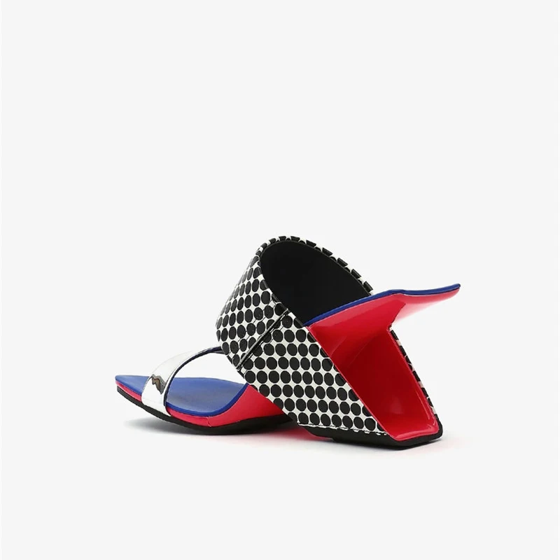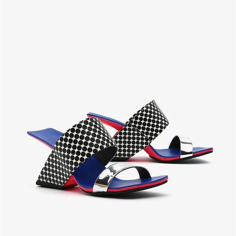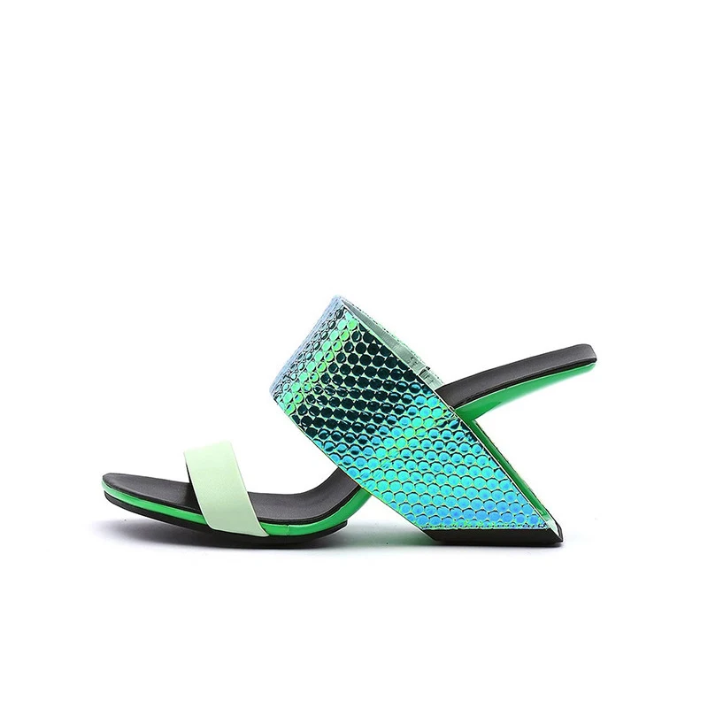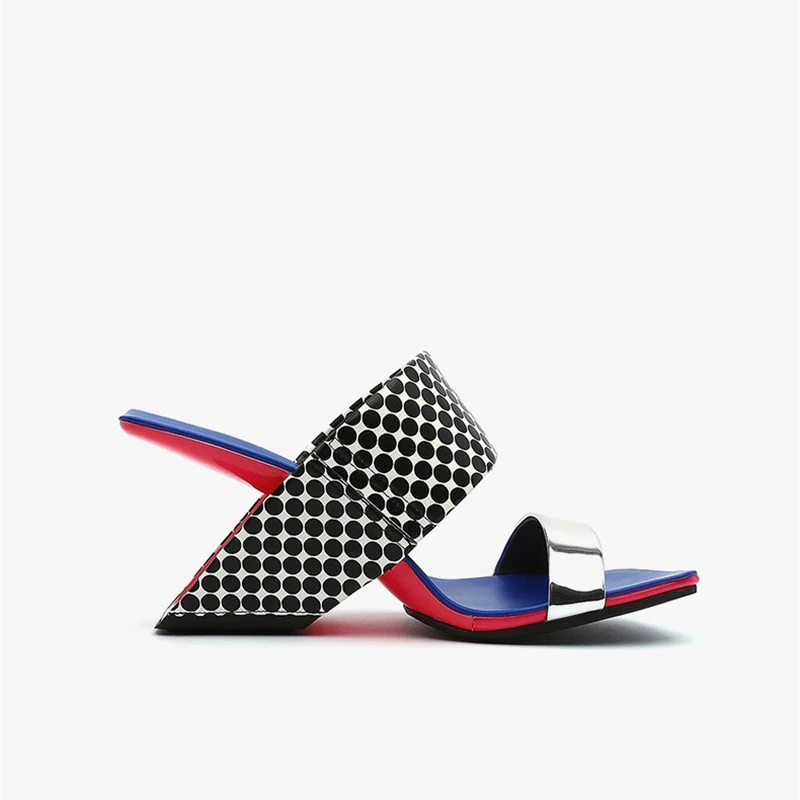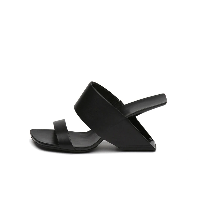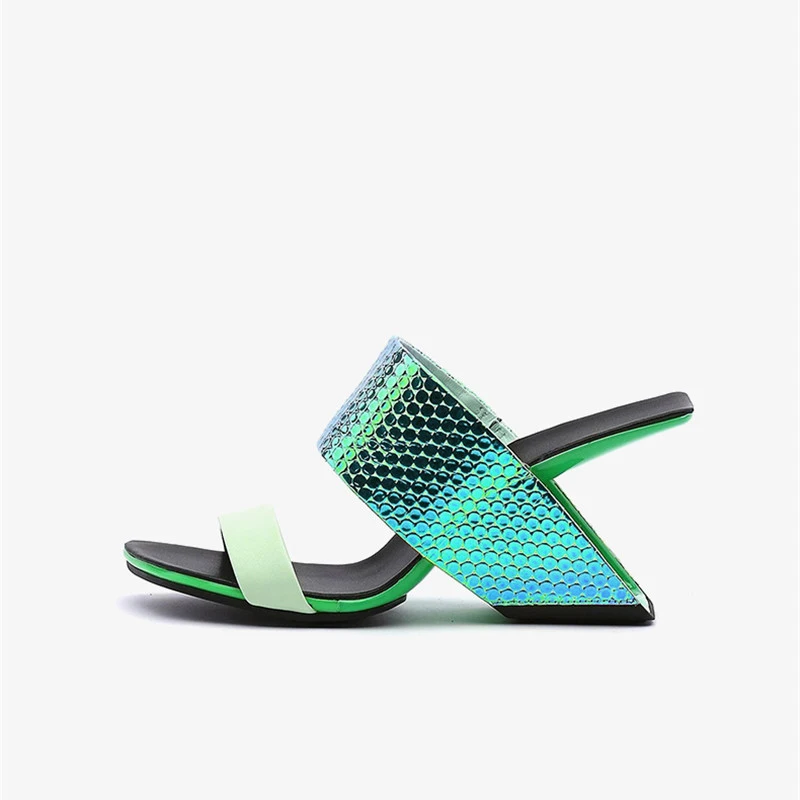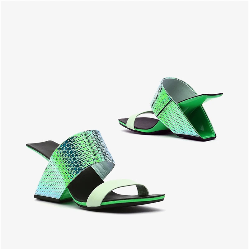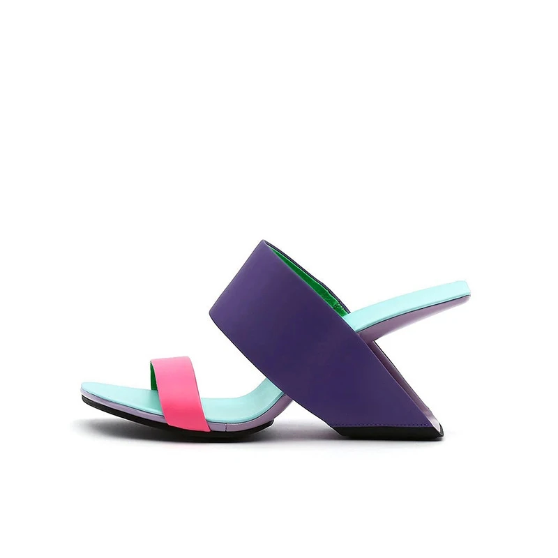 Шлепанцы из натуральной кожи, с открытым носком, на высоком каблуке 8 см