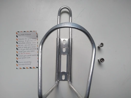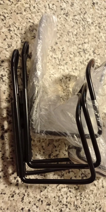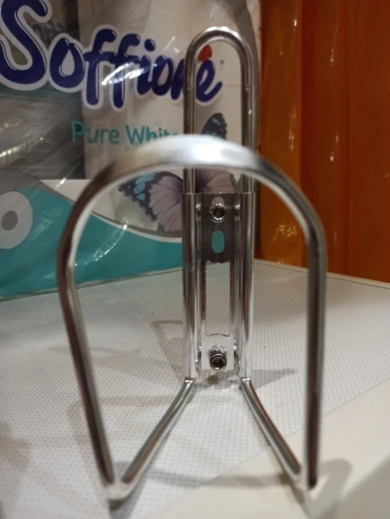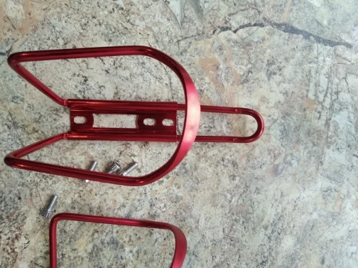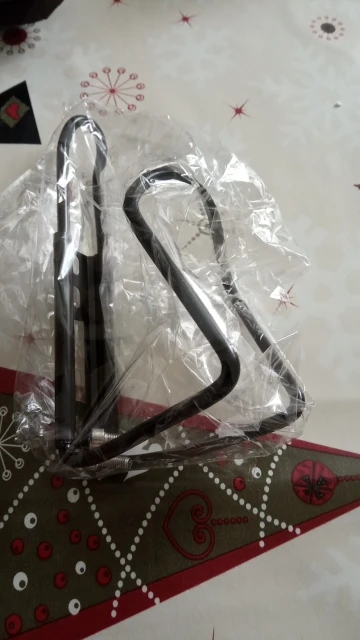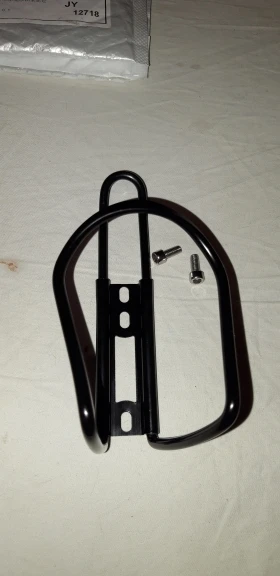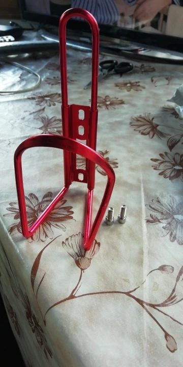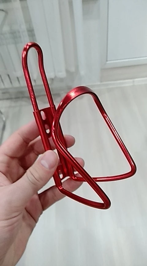 Довольно смешанные впечатления от держателя. С одной стороны дёшево (78р.), есть бонки в комплекте, а с другой качество исполнения. Крашеные может по лучше будут выглядеть, но мой экземпляр не очень, везде какие то пятна и разводы которые не смываются и не оттираются вообще, мягкий метал и качество его обработки, ну и сам держатель кривой и причём именно кривой, а не мятый в дороге. Кривизна именно на производстве! Если бы качество обработки было не такое ужасное и чуть жёстче металл, то это был бы отличный держатель для любого велосипеда. А так я бы сказал, что для ашан байка сойдёт.