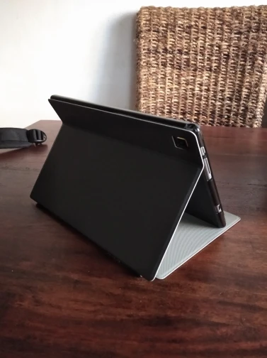 La funda es de plástico en el color elegido y está en perfecto estado también lo está en perfecto estado el protector de la pantalla. Ambos ajustan perfectamente aunque en la funda hay que hacer un poco de fuerza para que entre. De primeras no pude, use conseguirlo y al final se me ocurrió ayudarme con un palo plano de bambú y entro perfectamente. Pero el lápiz me ha desilusionado enormemente, puesto que en realidad no es un lápiz para poder escribir o dibujar. Es más bien un puntero con una punta redondeada de goma.