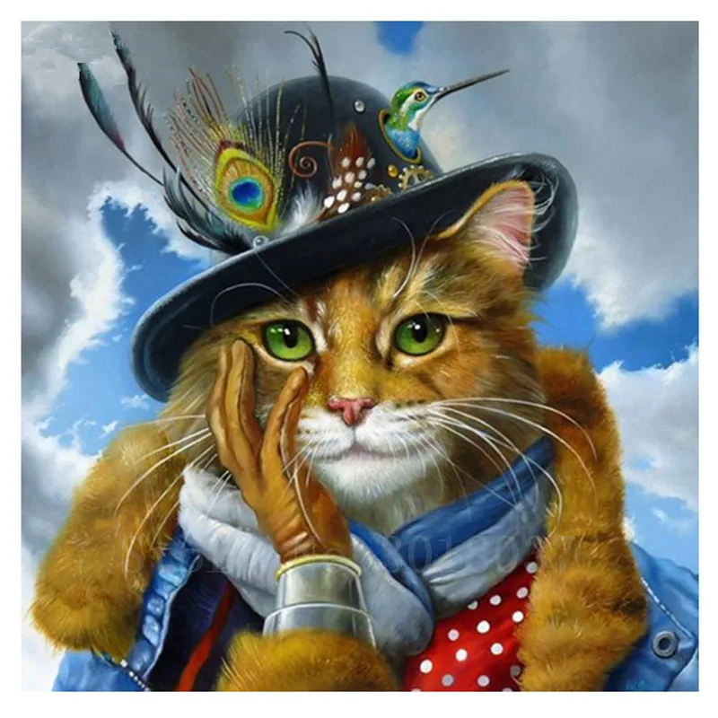 Алмазная 3D картина сделай сам, вышивка крестиком, Кот в шляпе и одежде, Алмазная мозаика, полная Алмазная вышивка стразы, украшение в подарок