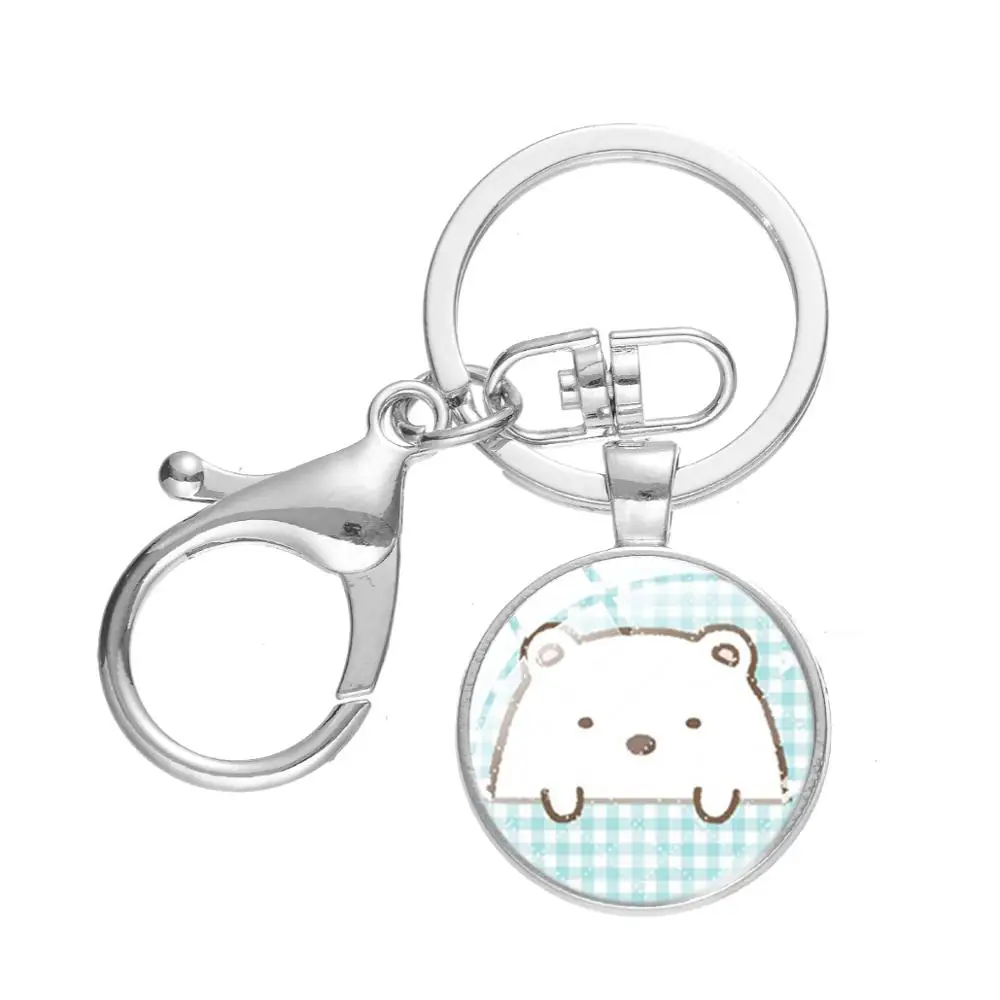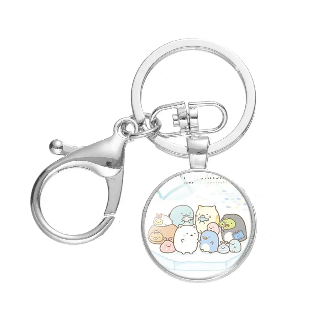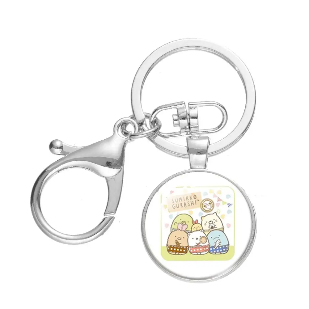 Милые Мультяшные брелки Sumikkogurashi Sumikko для косплея из цинкового сплава, металлический брелок, подвеска для ключей, металлический круглый стеклянный брелок