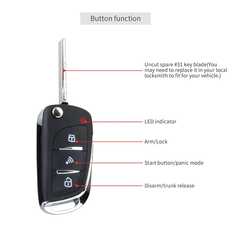Если в вашем оригинальном автомобильном пульте дистанционного управления есть чип (ключ), вам нужно купить дополнительный байпасный модуль или вы не можете использовать функцию удаленного запуска. У нас есть байпасный модуль для продажи, и вы можете купить их вместе. Если вы не уверены, есть ли чип на вашем пульте дистанционного управления, пожалуйста, обратитесь к продавцу автомобиля или профессиональному персоналу.Вот тот, который вы можете принять во внимание.