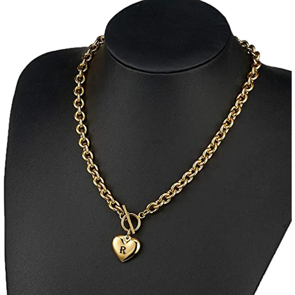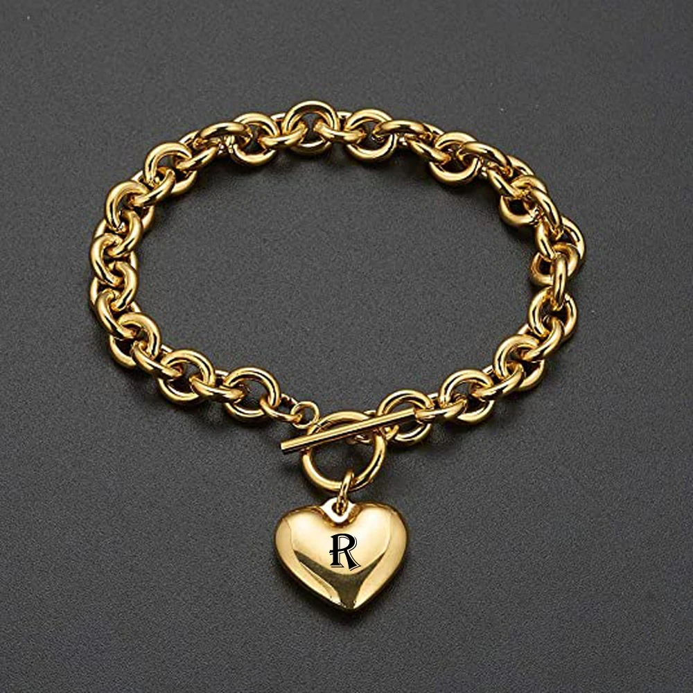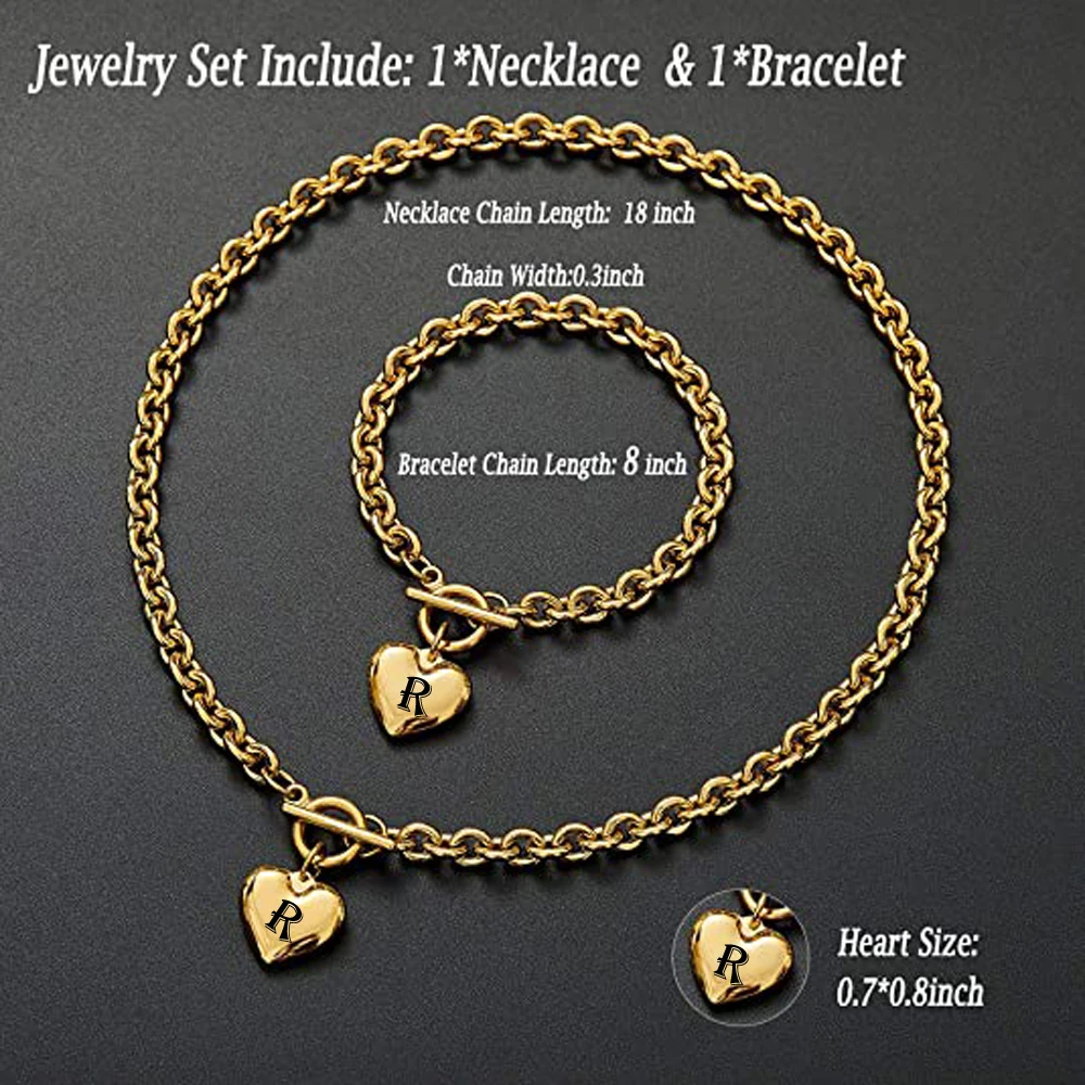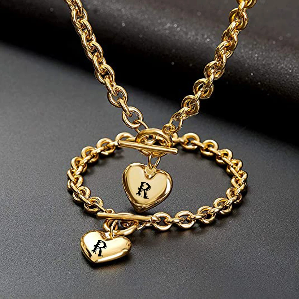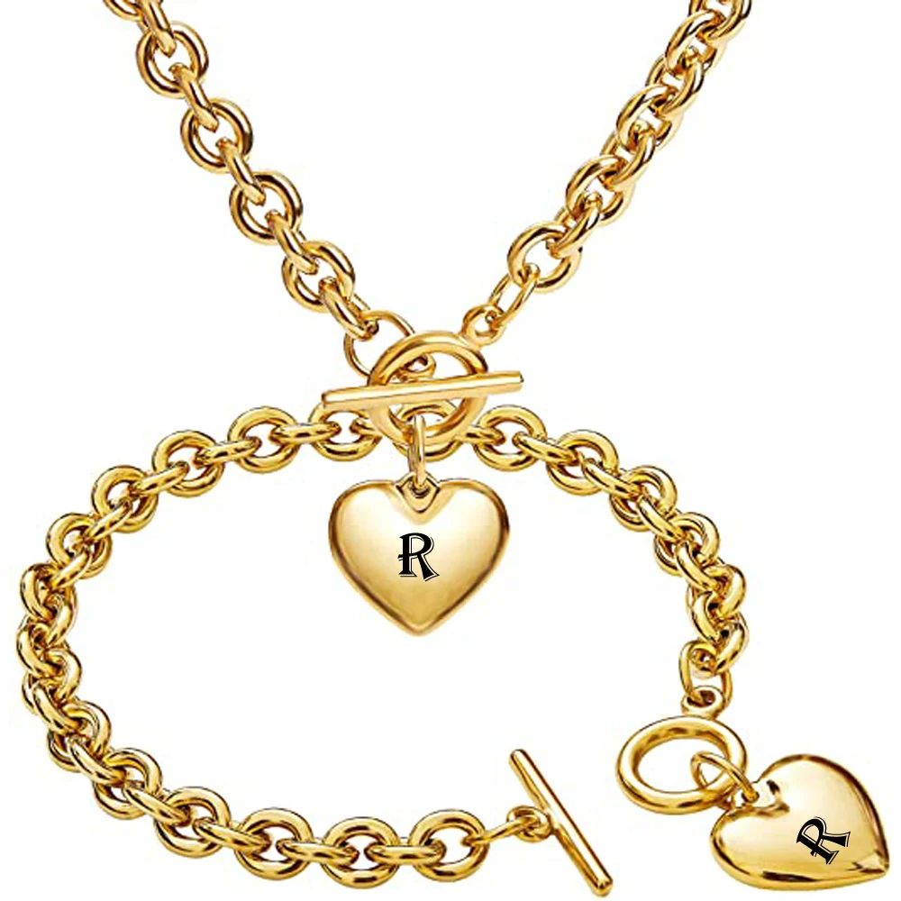 Комплект ювелирных изделий для женщин, овальная цепочка из нержавеющей стали с гравировкой в форме сердца, A-Z, цвет золото, овальное ожерелье, браслет