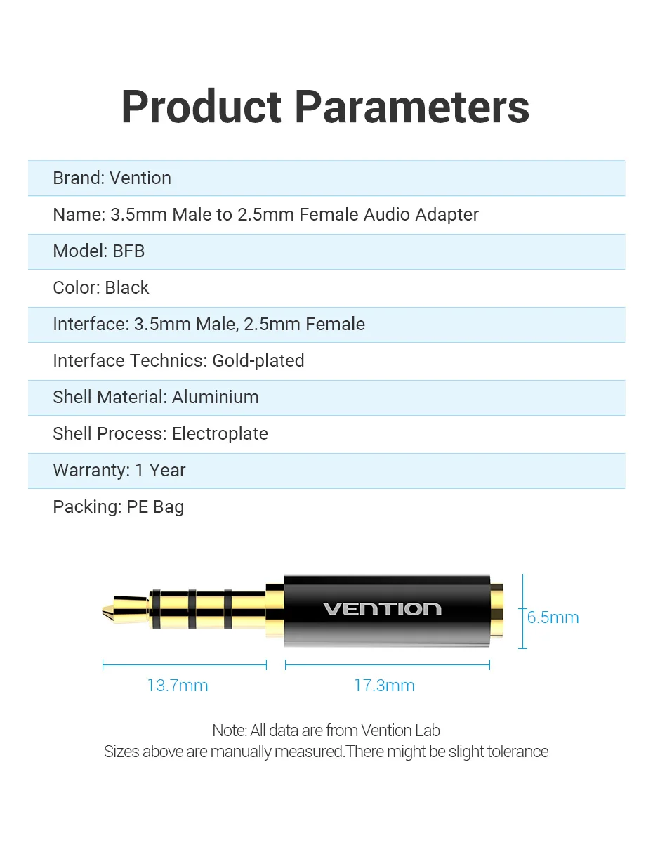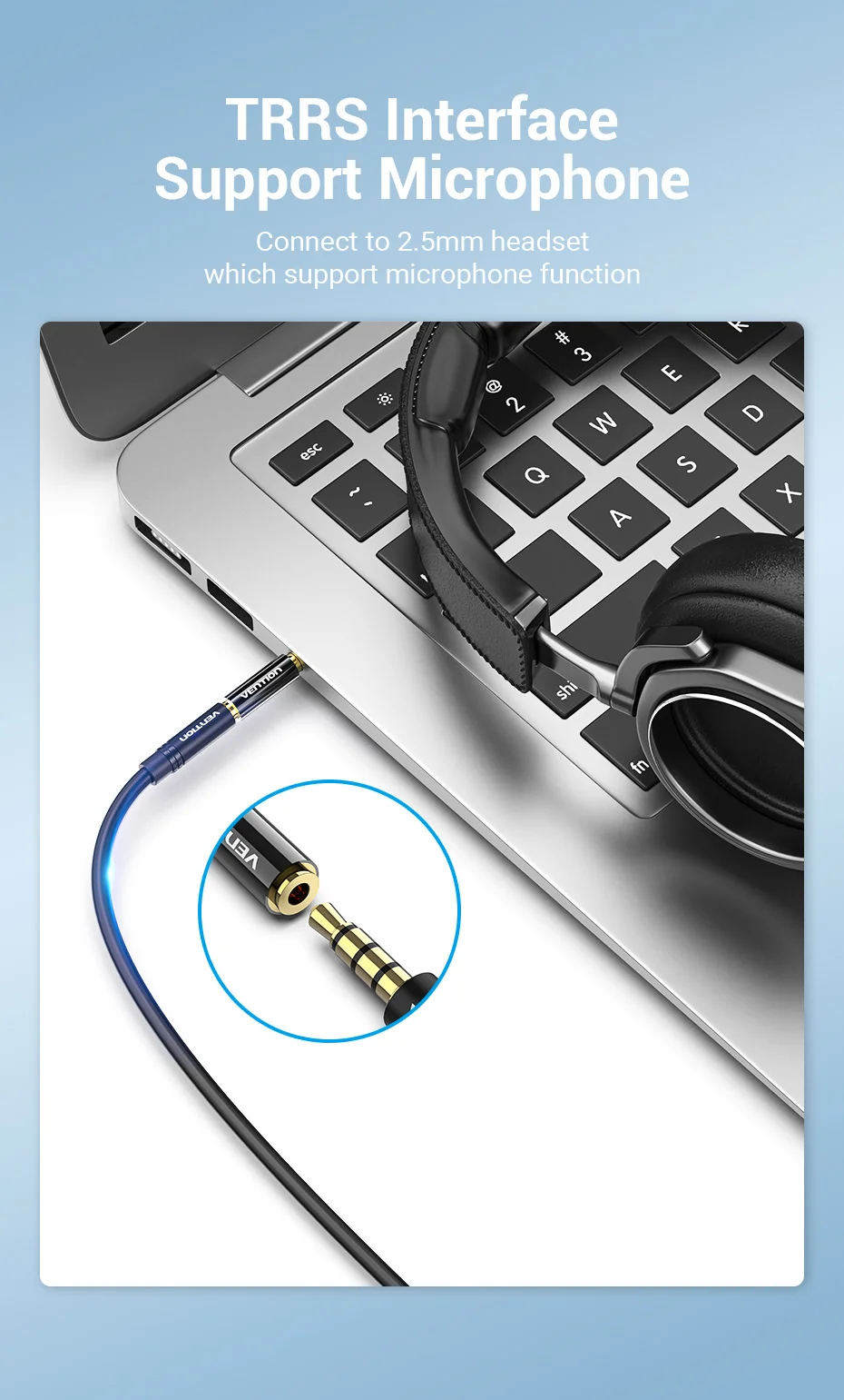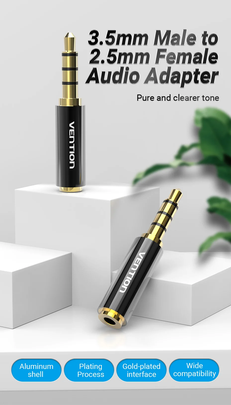 Аудиоадаптер Vention с разъемом 3,5 мм на 2,5 мм штекер-гнездо, аудиоадаптер для динамиков, ноутбуков, разъемов для наушников, Aux, коннектор кабеля от 2,5 до 3,5