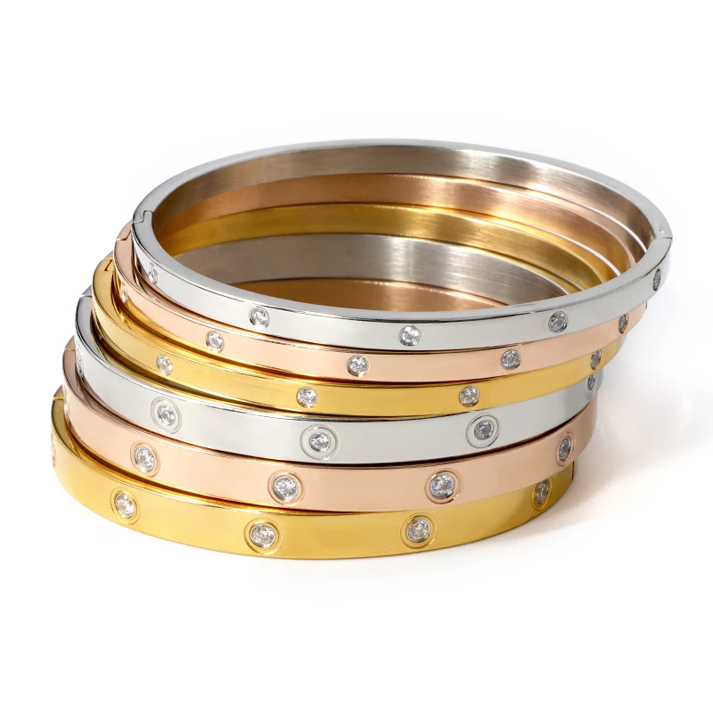 4 мм6 мм8 мм Нержавеющаясталь Пара CZ кристаллами браслеты для Для женщин мужчин Роскошные ювелирные изделия браслеты из розового золота любовника изготовленный на заказ браслет