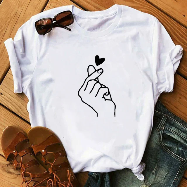Футболка женская FIXSYS, в стиле Харадзюку, черная, с изображением сердца ольччан, на лето, с буквенным принтом топы