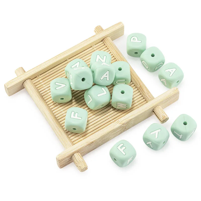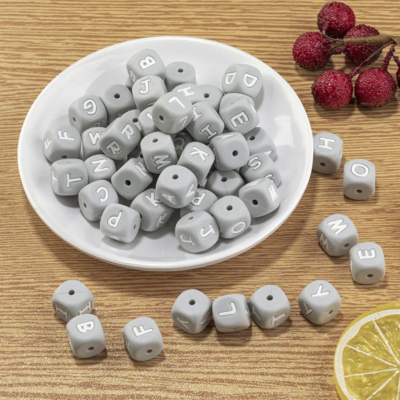 26 шт., 12 мм, серые силиконовые бусины в виде надписи, Жевательные...
