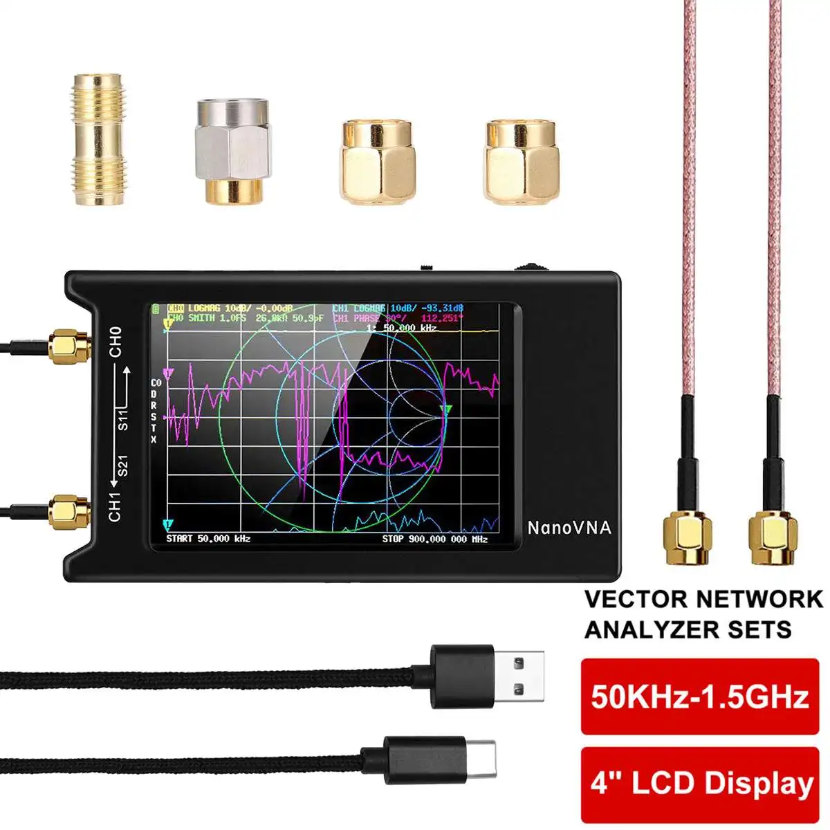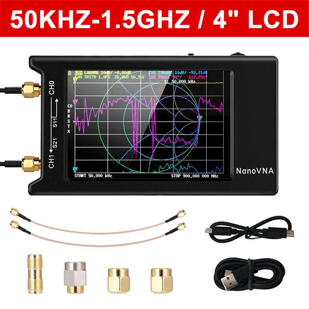NanoVNA-H4 4 "LCD 50KHz ~ 1,5 GHz VNA HF VHF UHF UV векторный сетевой анализатор