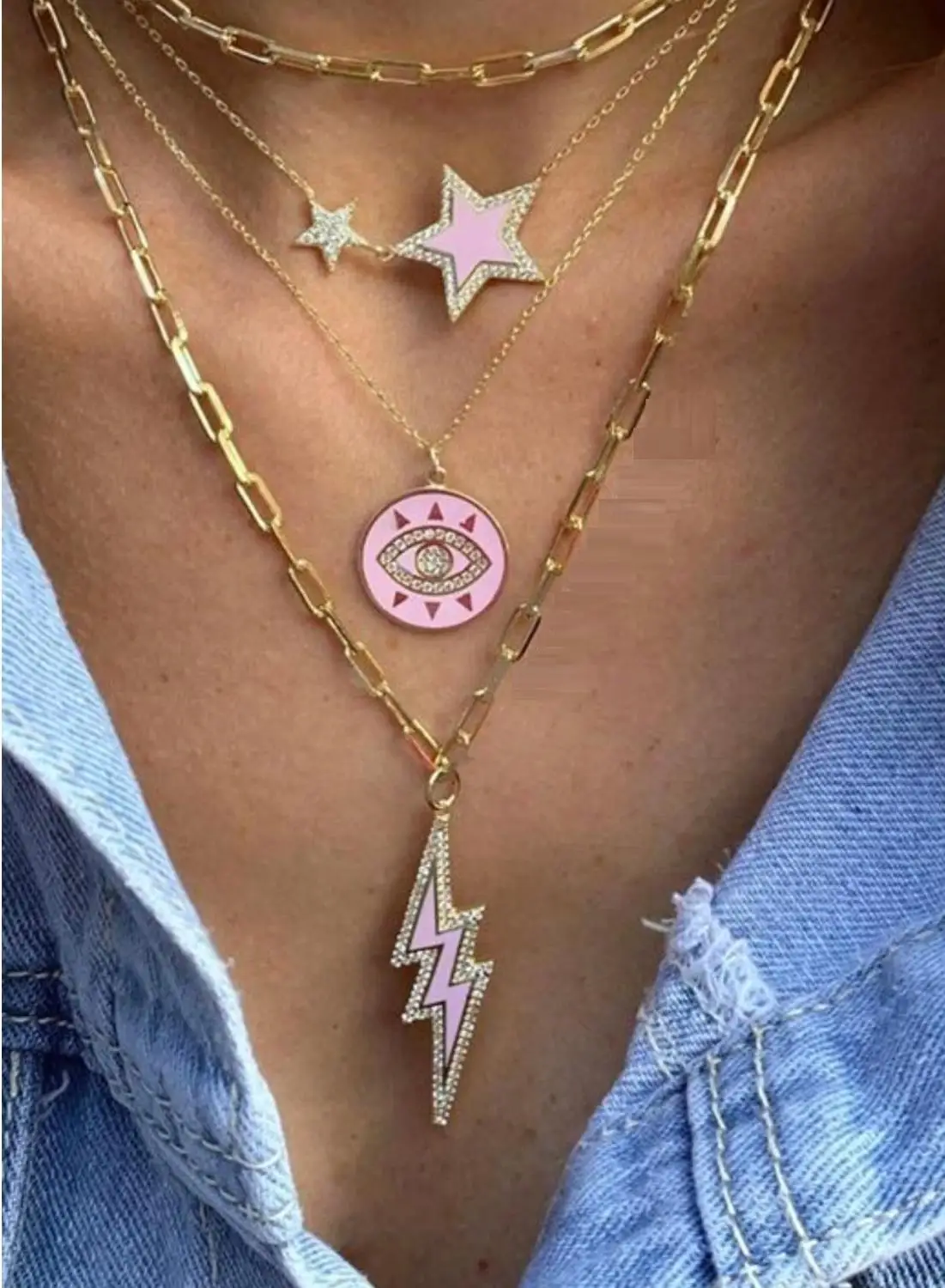 2020 Лето Красочные ювелирные изделия неоновая эмаль cz мощеная молния болт кулон открытое звено цепи ожерелье