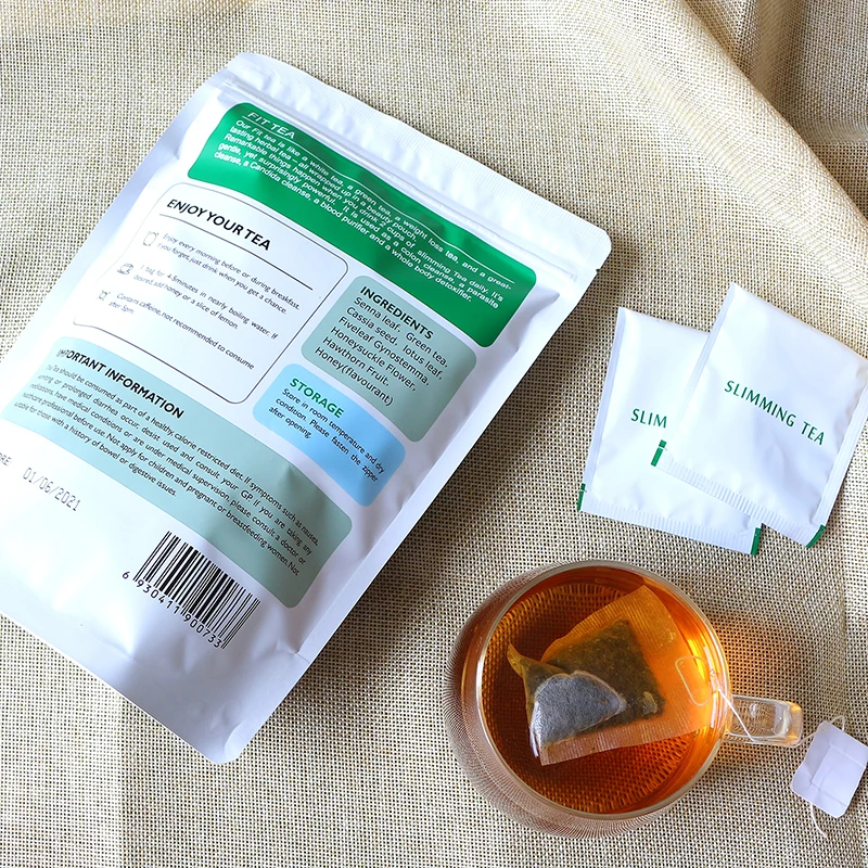 Fit Tea представляет собой детоксикационный чай, который поставляется в отдельных пакетах чая, содержащих органический зеленый чай, Oolong Wu Yi, экстракт гарцинии камбоджийской.
