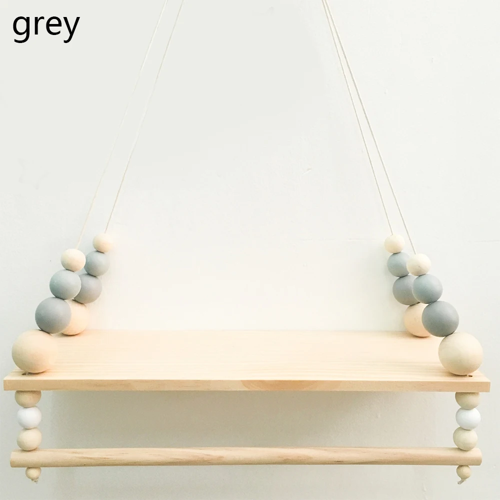 Nordic стены декоративные настенные полки для хранения детей Спальня детская комната аксессуары двойной Слои деревянная полка для бусин для хранения держатель стойки