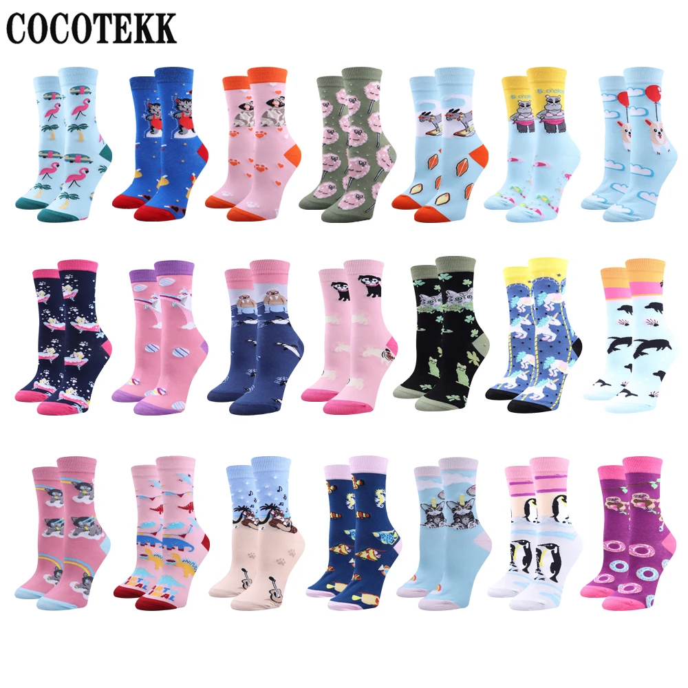 Носки женские хлопковые в стиле Харадзюку, Цветные Милые смешные носки с мультяшным принтом, милые Пришельцы из мопс, собака, кошка, в стиле Харадзюку, Осень-зима