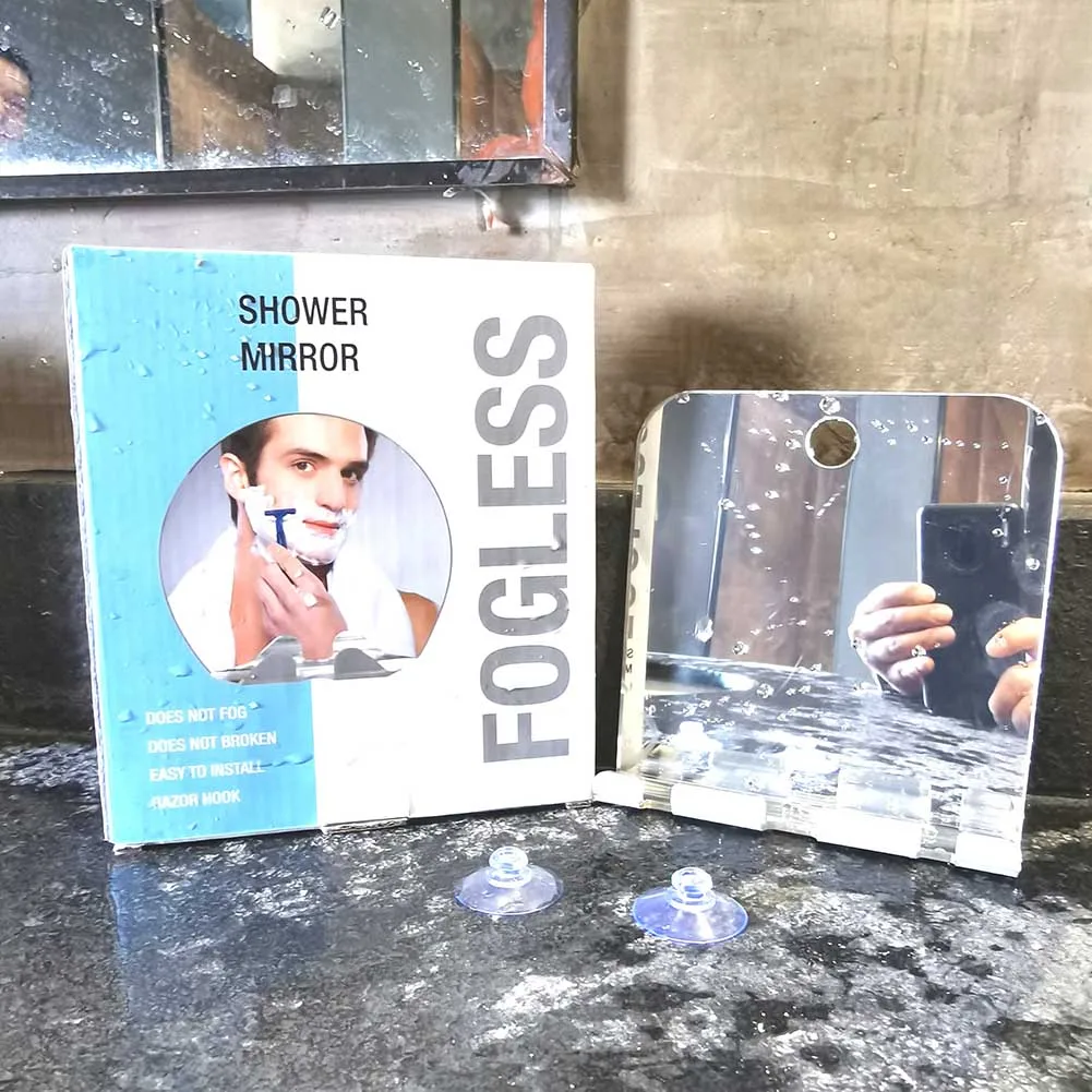 Портативное небьющееся антизапотевающее зеркало для душа, для бритья, держатель с крючком, присоска для уборной, настенное противотуманное дорожное зеркало