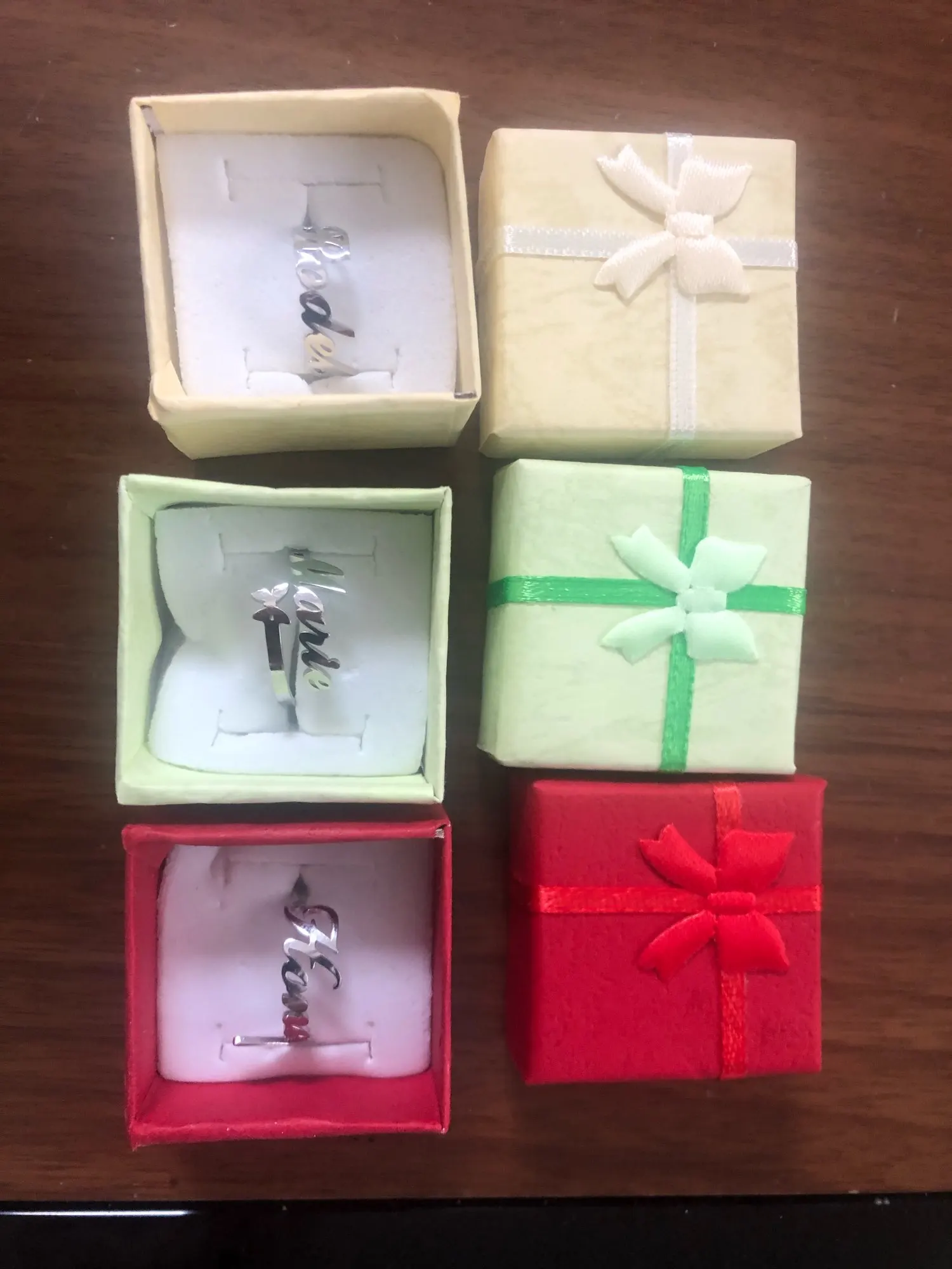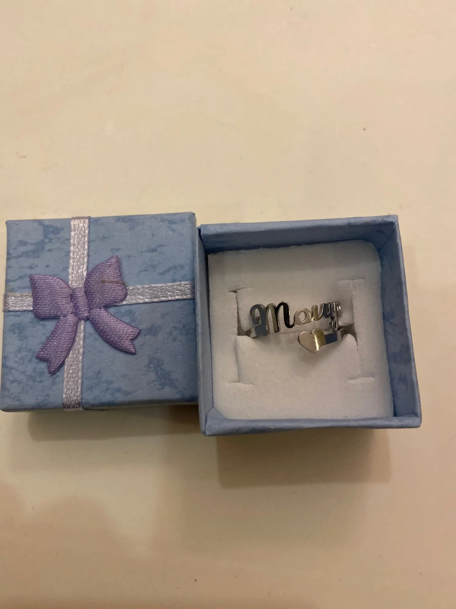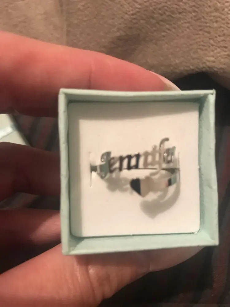 super belle! arrivée assez vite et conforme à mes demandes. ma fille va être super contente...belle bague personnalisée a.tarif imbattable ! merci à vous. ******