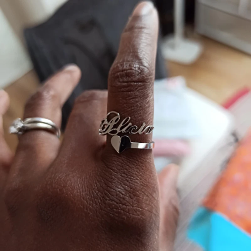 Обручальные кольца Teamer в форме сердца, позолоченные кольца из нержавеющей стали для женщин, Peronalized Name Jewelry, уникальные подарки для пар