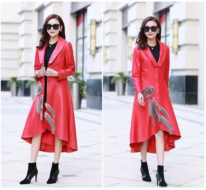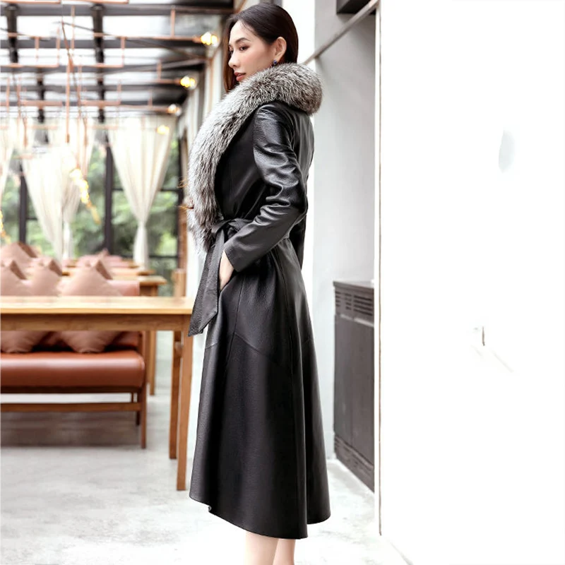 Женская кожаная куртка для зимы 2020, Новая высококачественная элегантная тонкая Длинная кожаная куртка с большим меховым воротником, женская верхняя одежда, для зимы, для женщин, верхняя одежда, для женщин, для детей, для женщин, для зимы, 2020